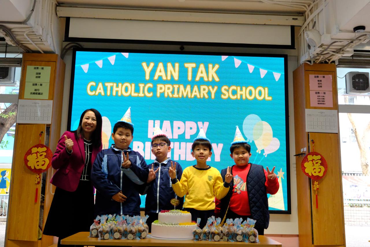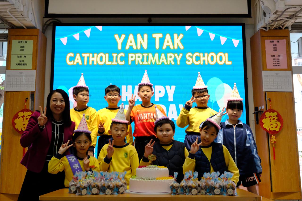 本校在2月3日(二)舉行了「生日祝福禮」(二月份),邀請所有在2月份生日的同學與校長一起唱生日歌和拍照,並互道祝福。每位仁德壽星更會獲派一個紙包蛋糕,大家都吃得十分滋味呢!