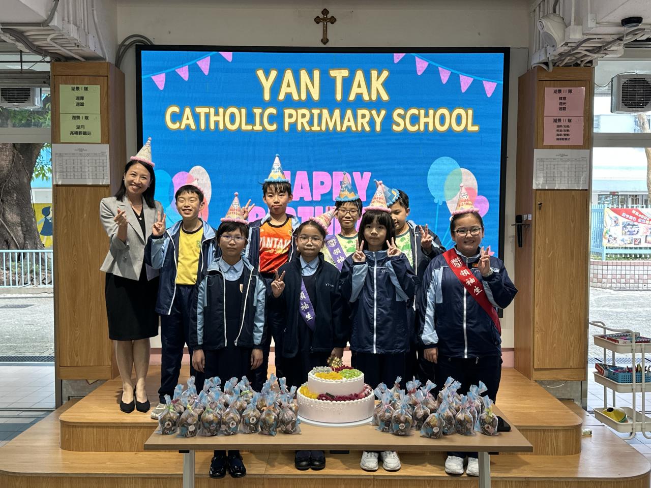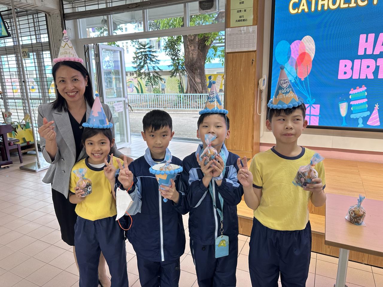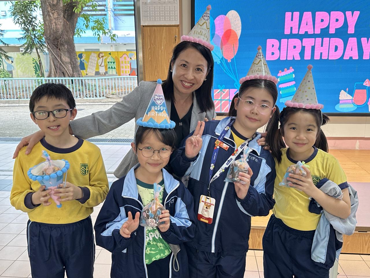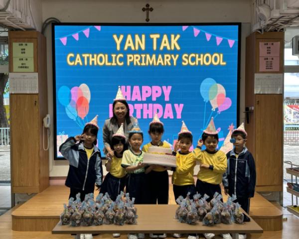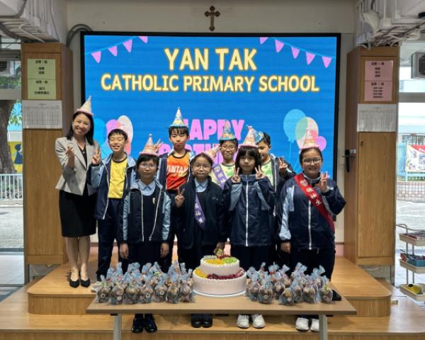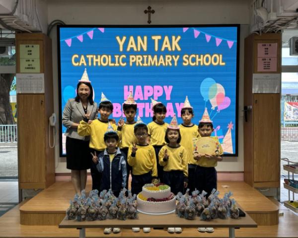 本校在3月24日(二)舉行了「生日祝福禮」(四月份),邀請所有在4月份生日的同學與校長一起唱生日歌和拍照,並互道祝福。每位仁德壽星更會獲派一個紙包蛋糕,大家都吃得十分滋味呢!