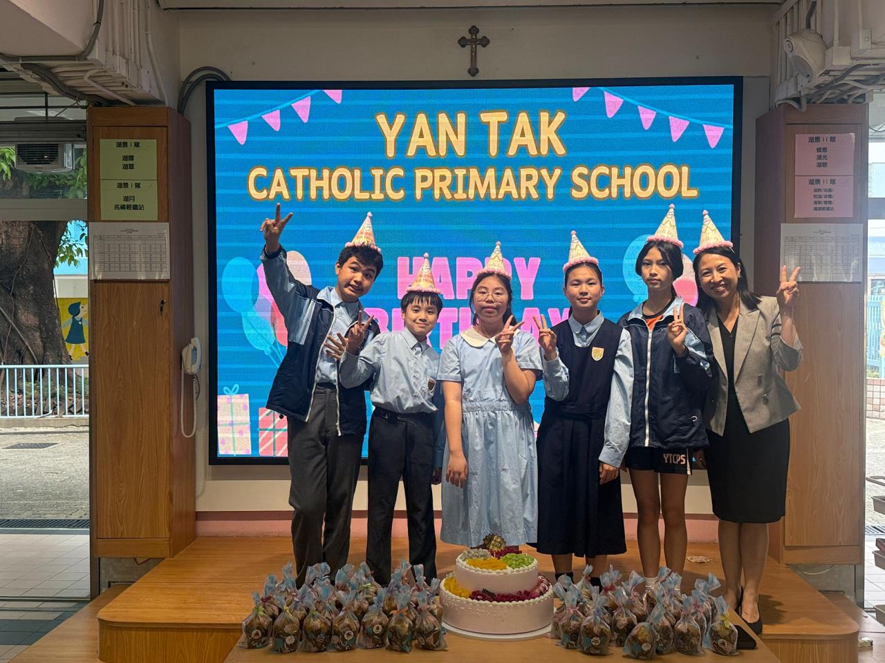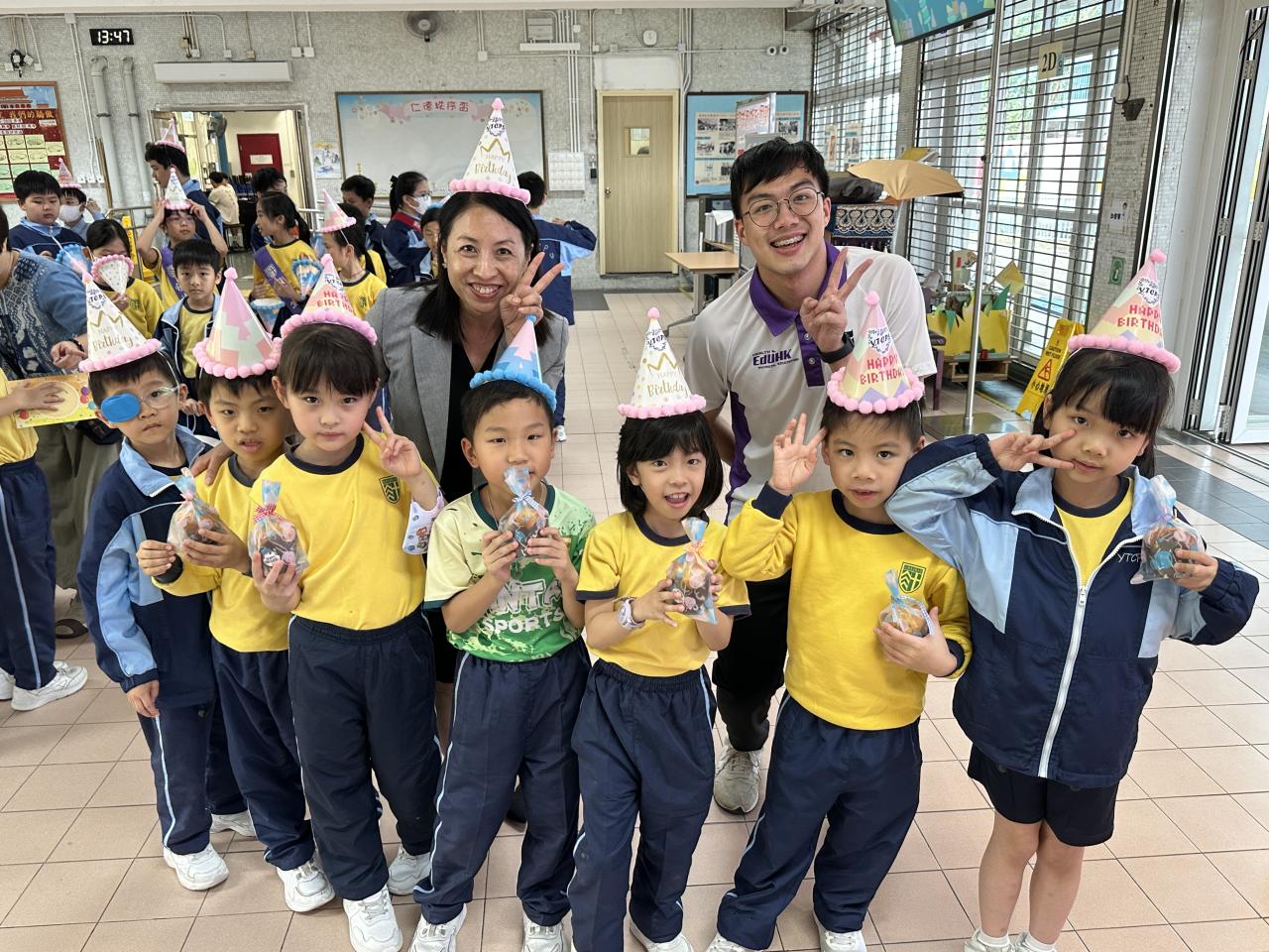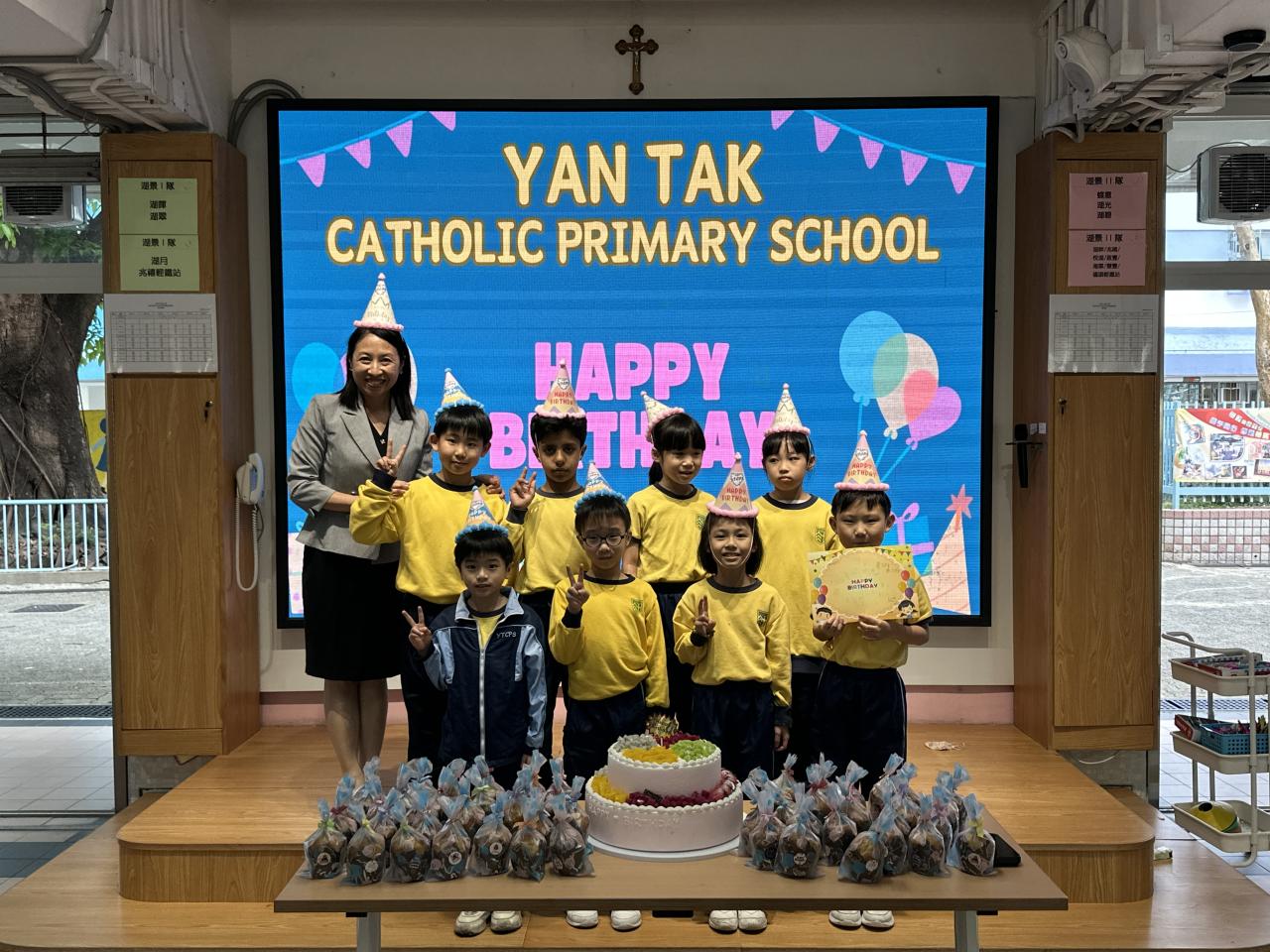 本校在3月24日(二)舉行了「生日祝福禮」(四月份),邀請所有在4月份生日的同學與校長一起唱生日歌和拍照,並互道祝福。每位仁德壽星更會獲派一個紙包蛋糕,大家都吃得十分滋味呢!