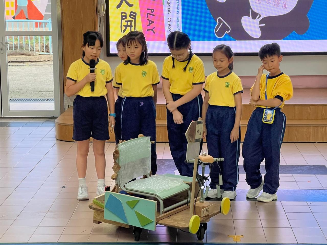 24位四年級學生參與了六節由「PMQ 元創方」舉辦的創意教育項目「Senses in Play」校園工作坊。他們透過七種感官探索周遭環境,由專業導師帶領孩子經歷「設計思維」,並透過建築、藝術和STEAM的跨界體驗,設計及創作了四輛校園電動車。他們更於10月25日進行了成果分享日,邀請了校長及家長體驗校園電動車,漫遊校園。