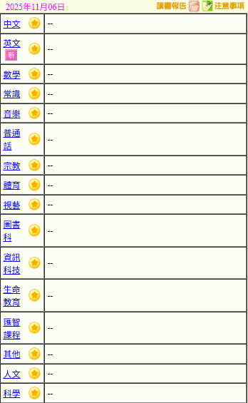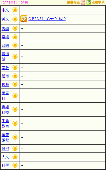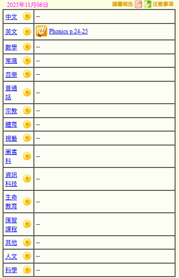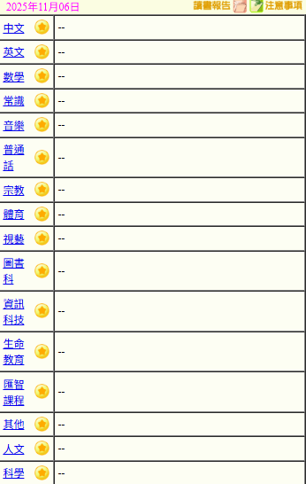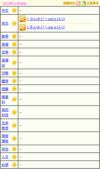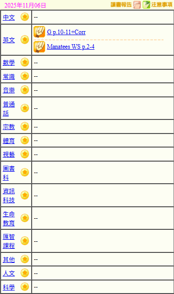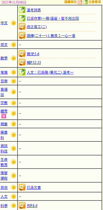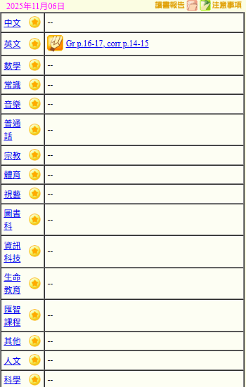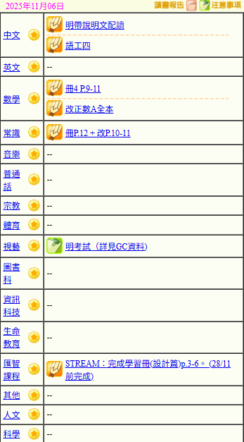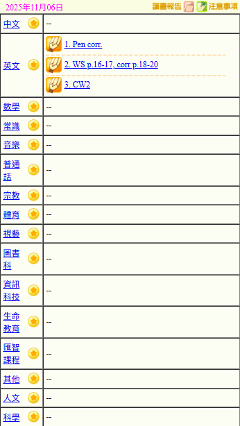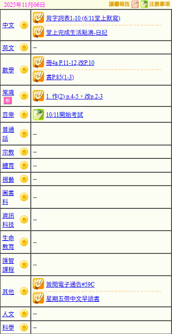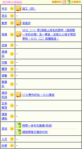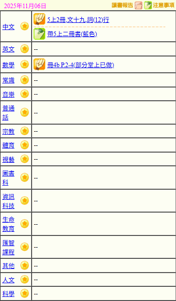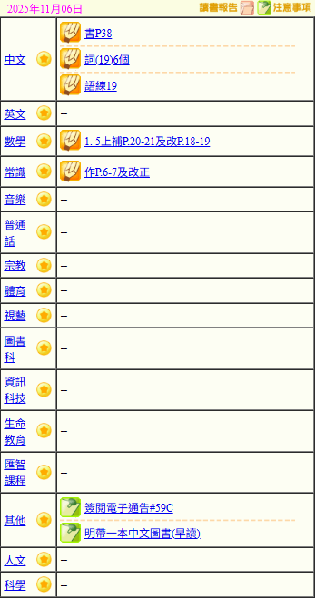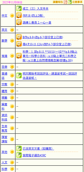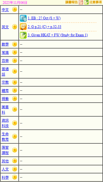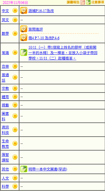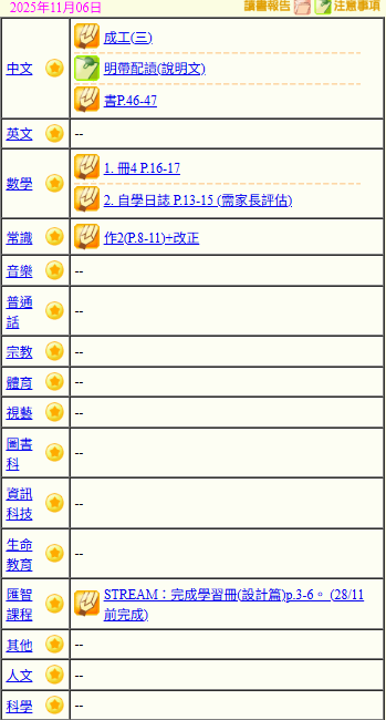 - 班別家課