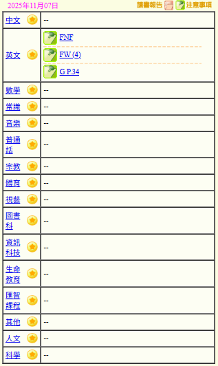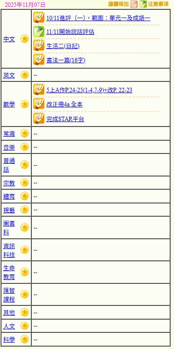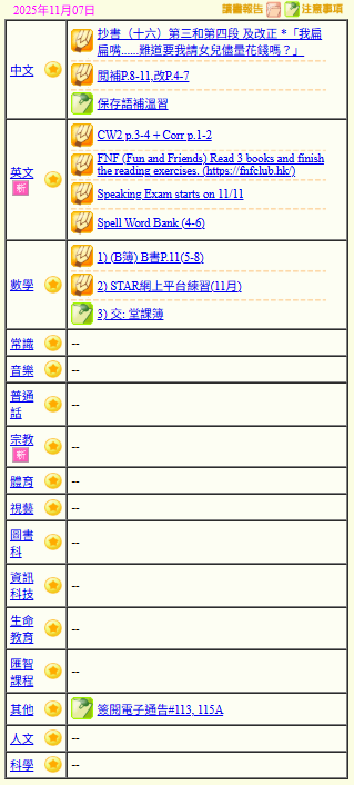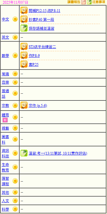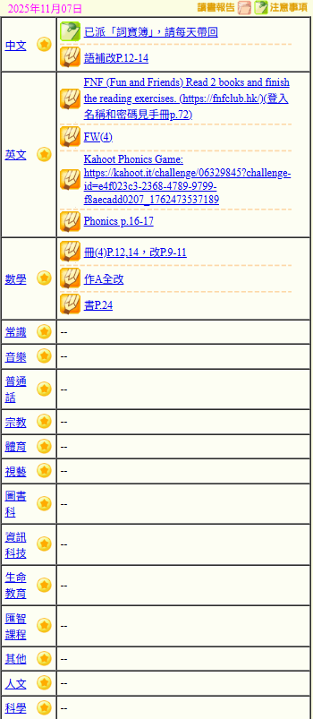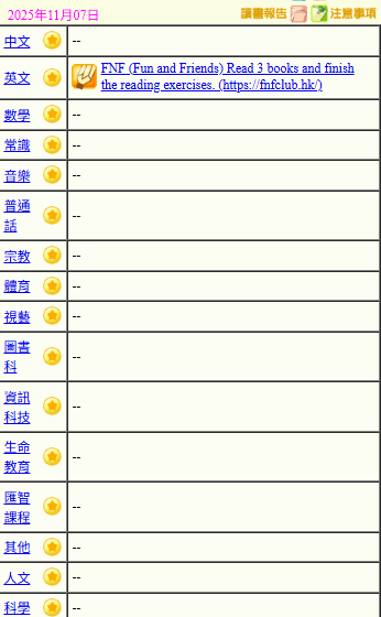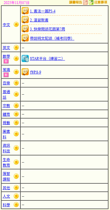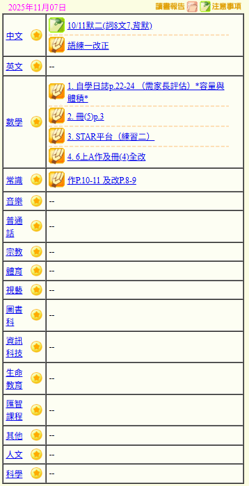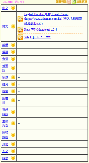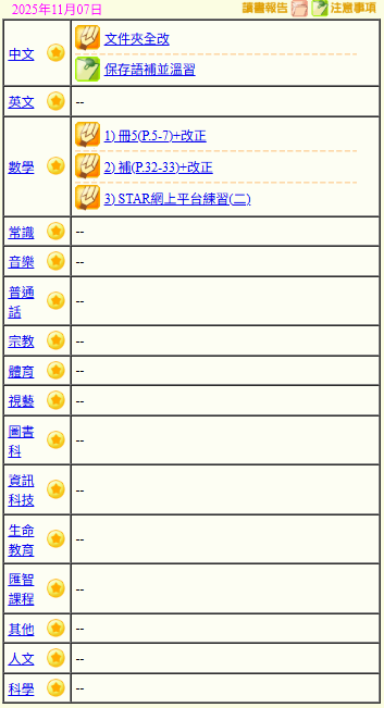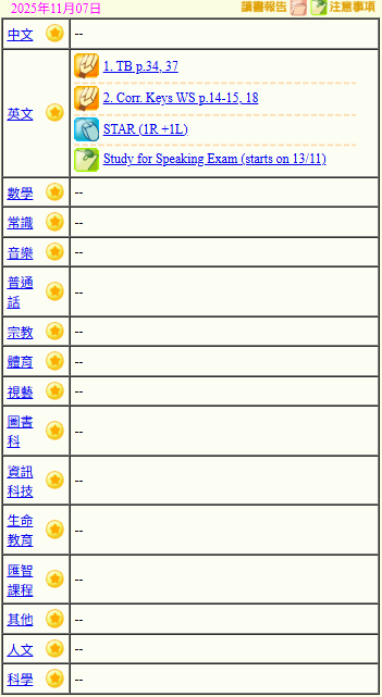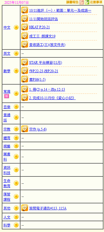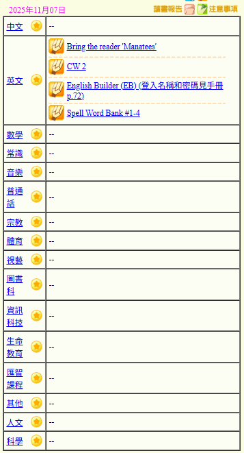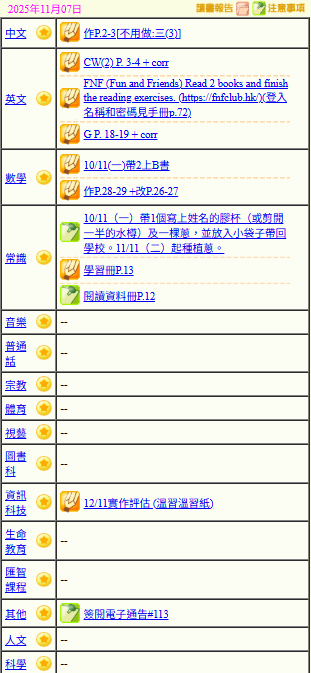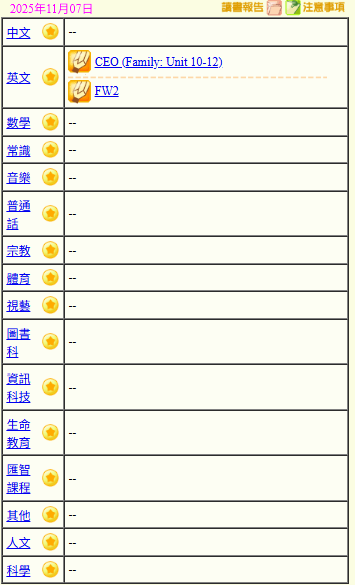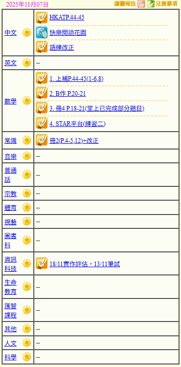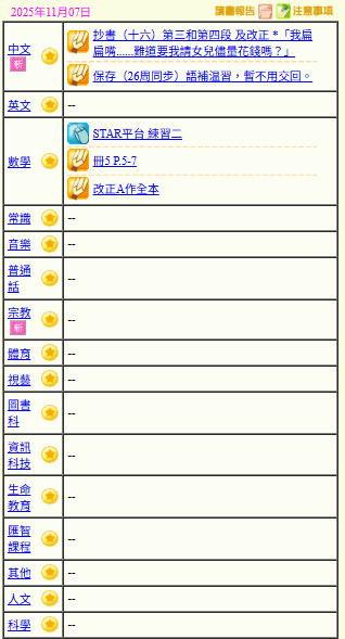 - 班別家課
