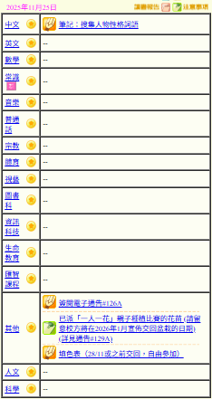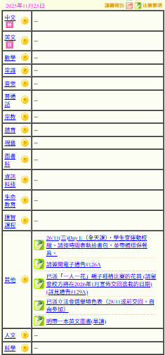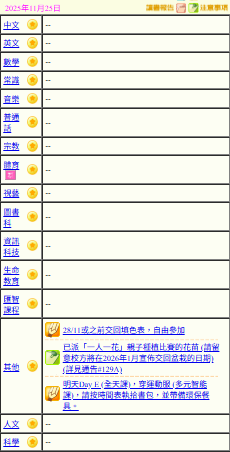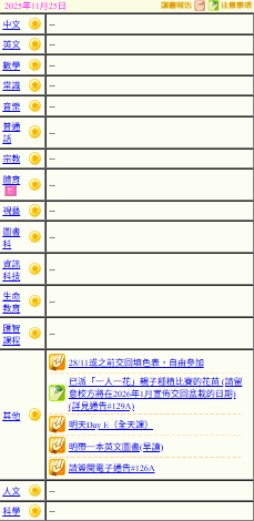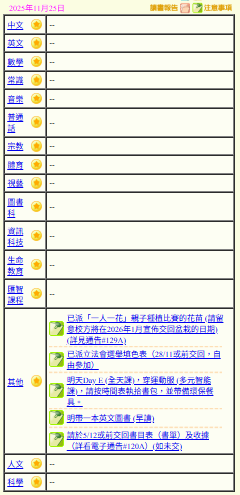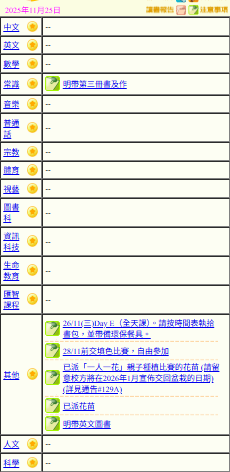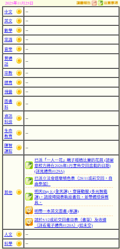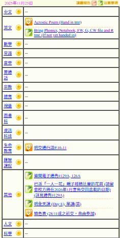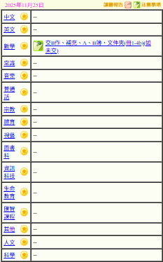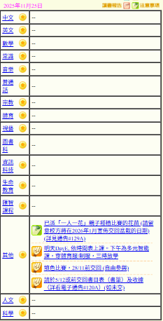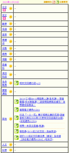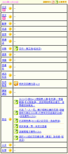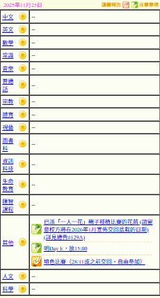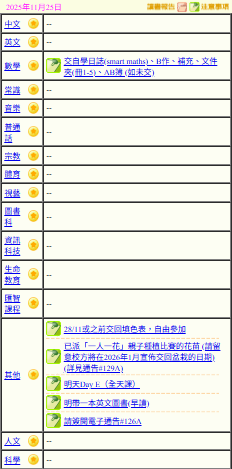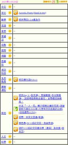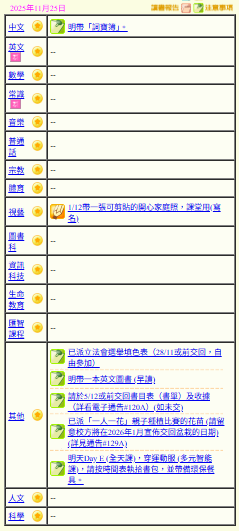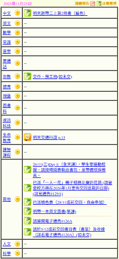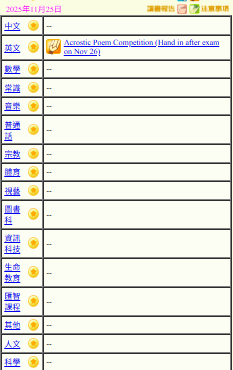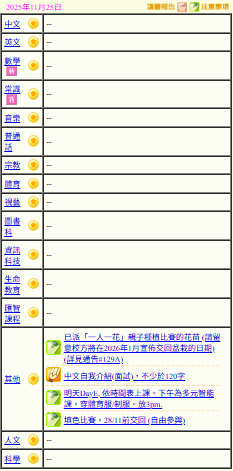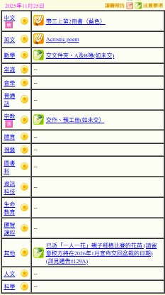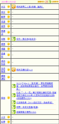 - 班別家課