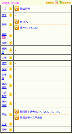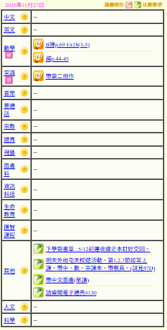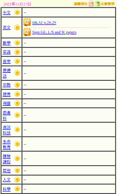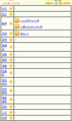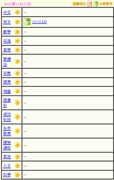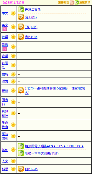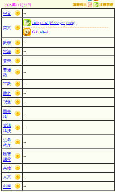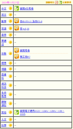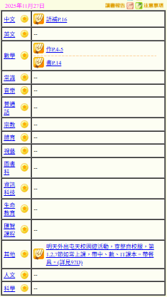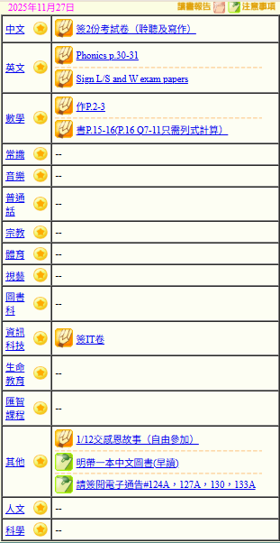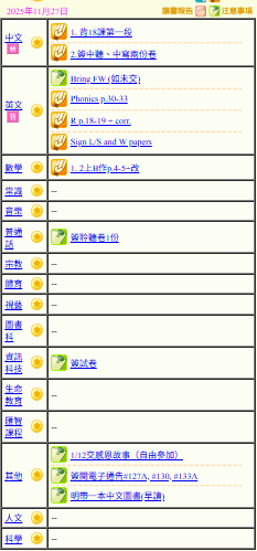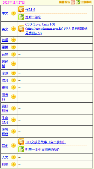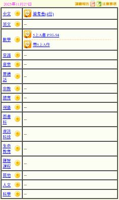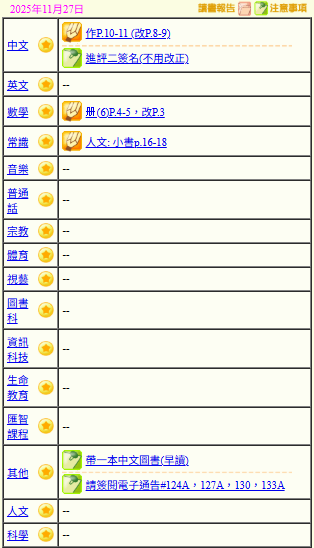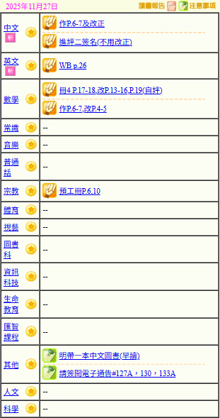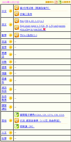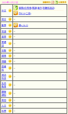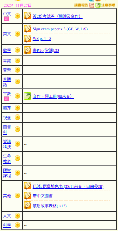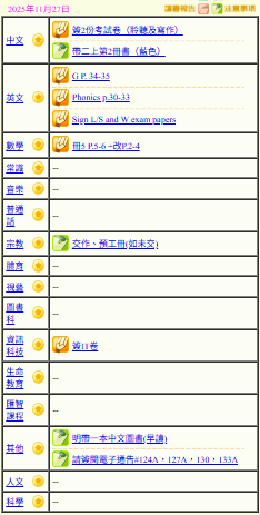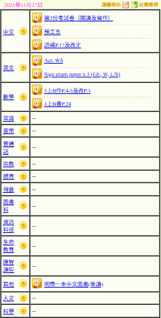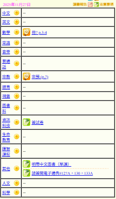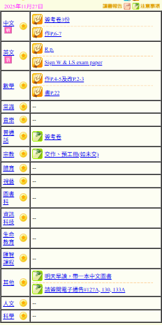 - 班別家課