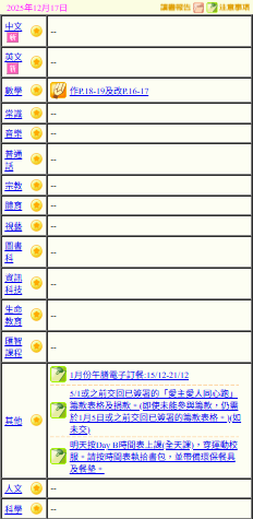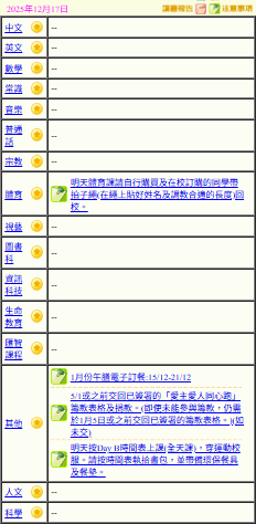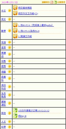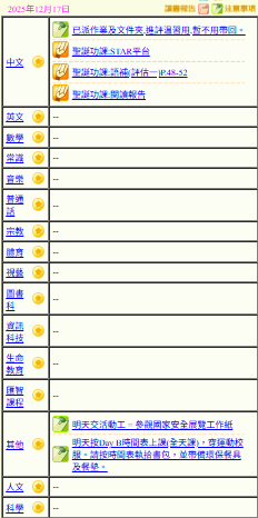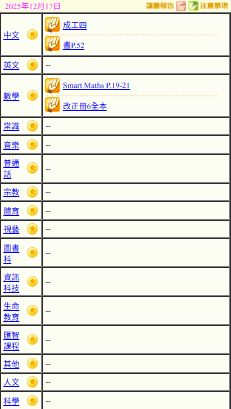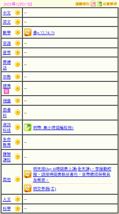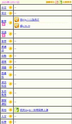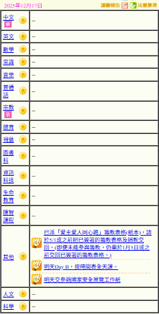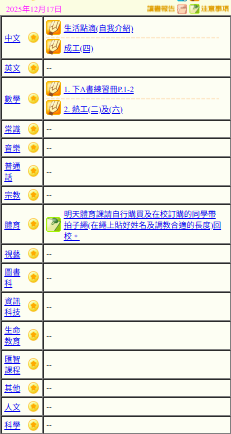 - 班別家課