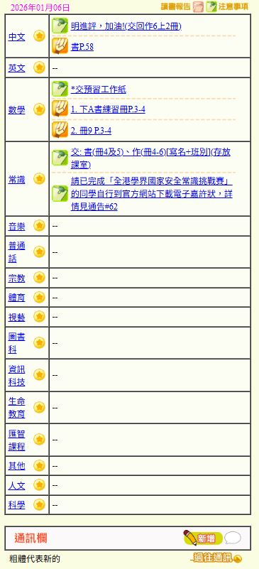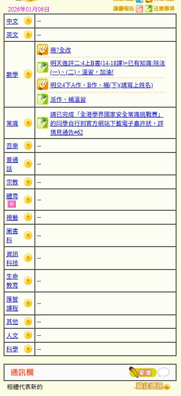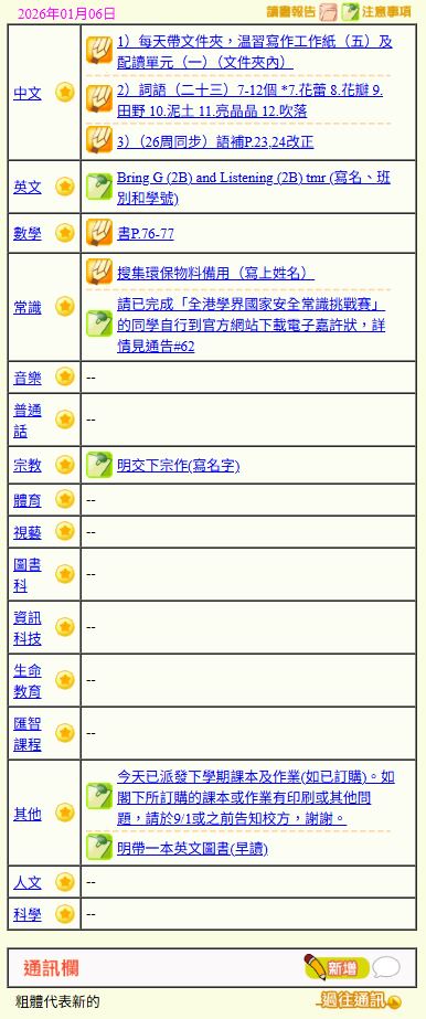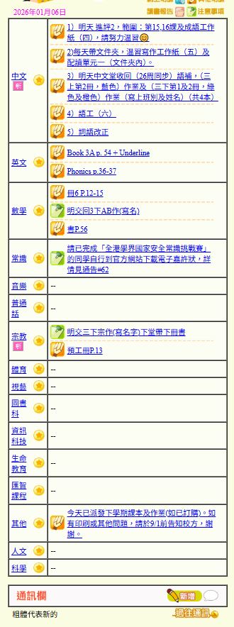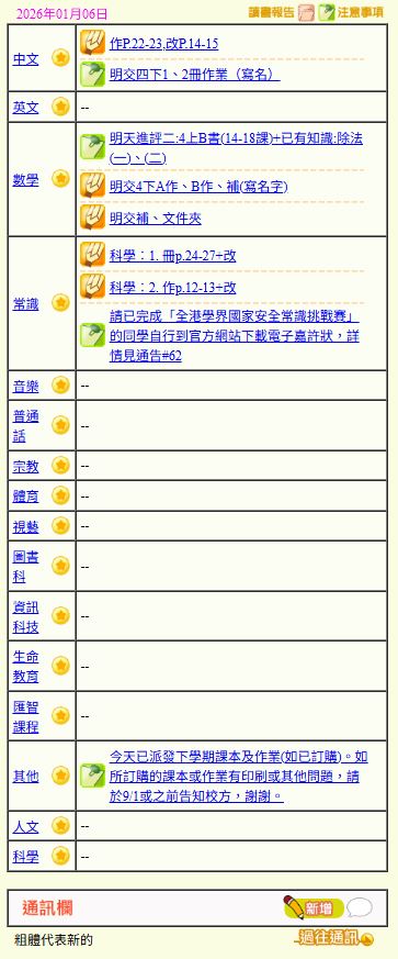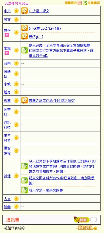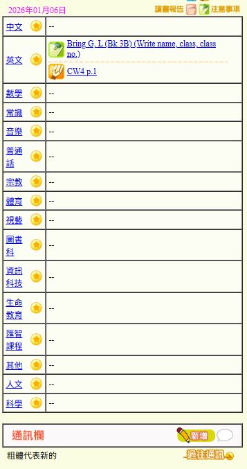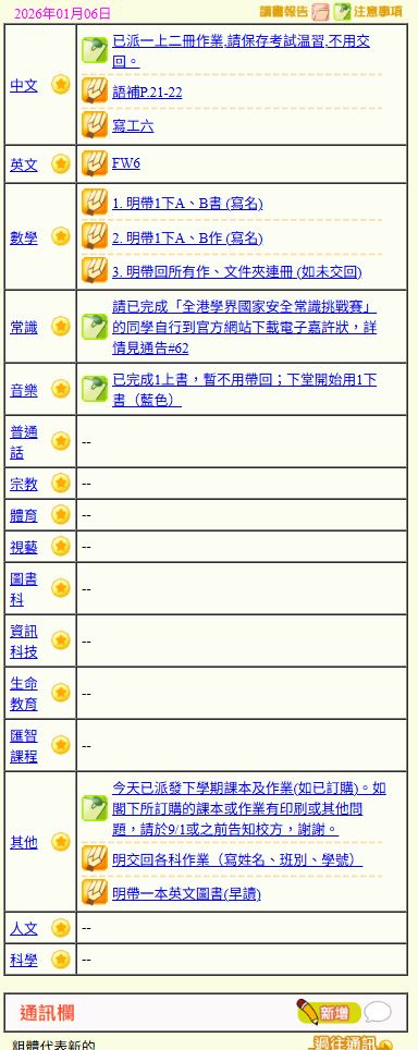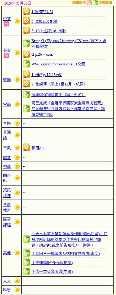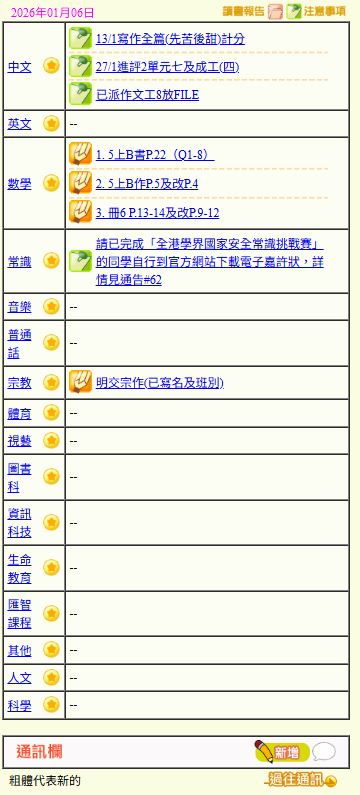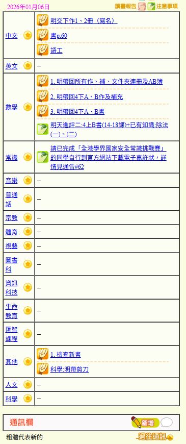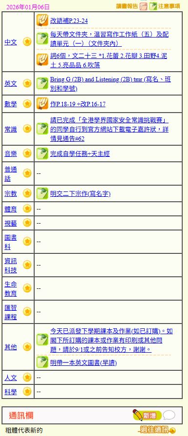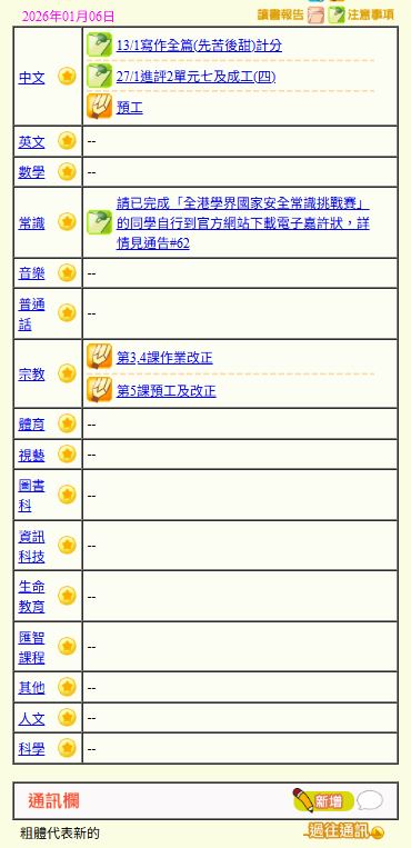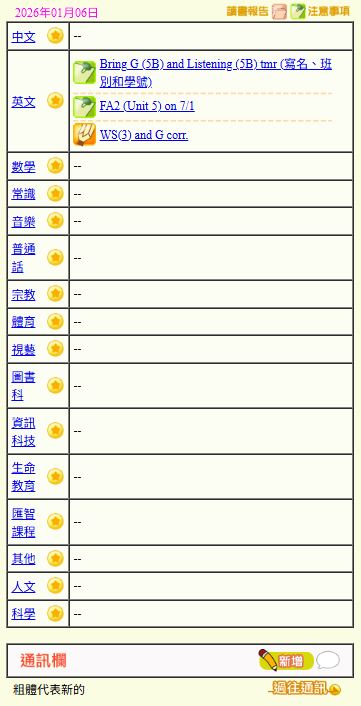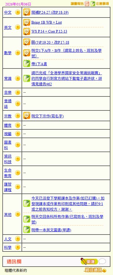 - 班別家課