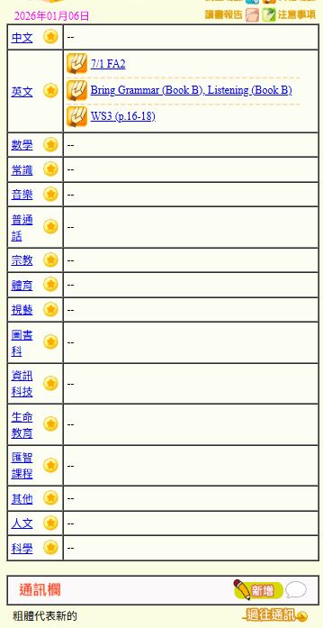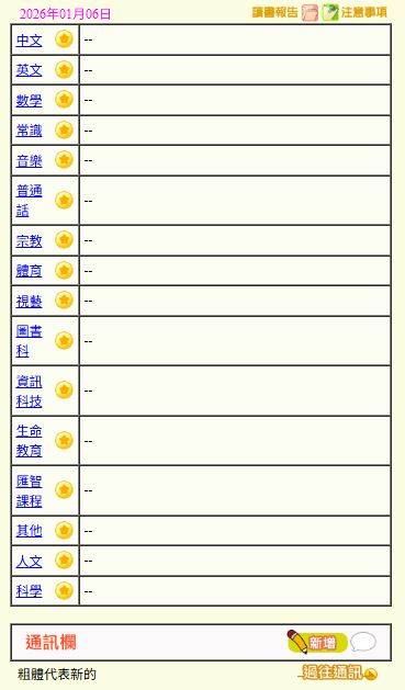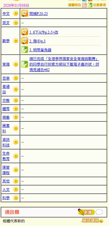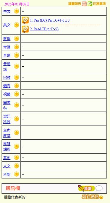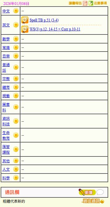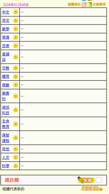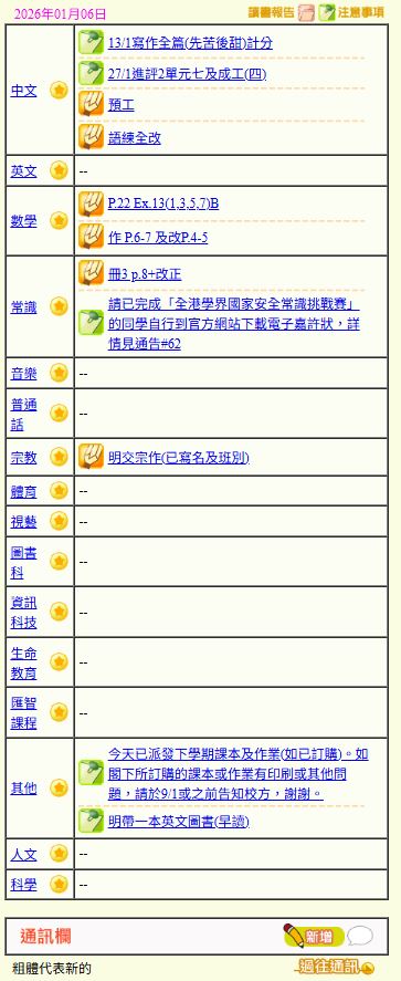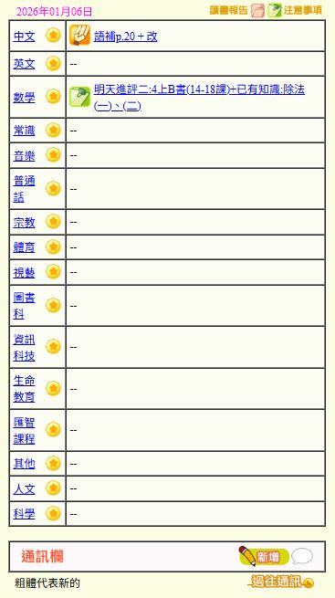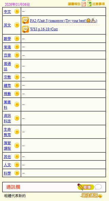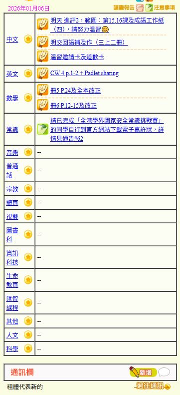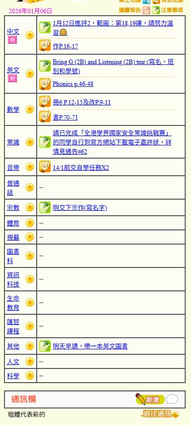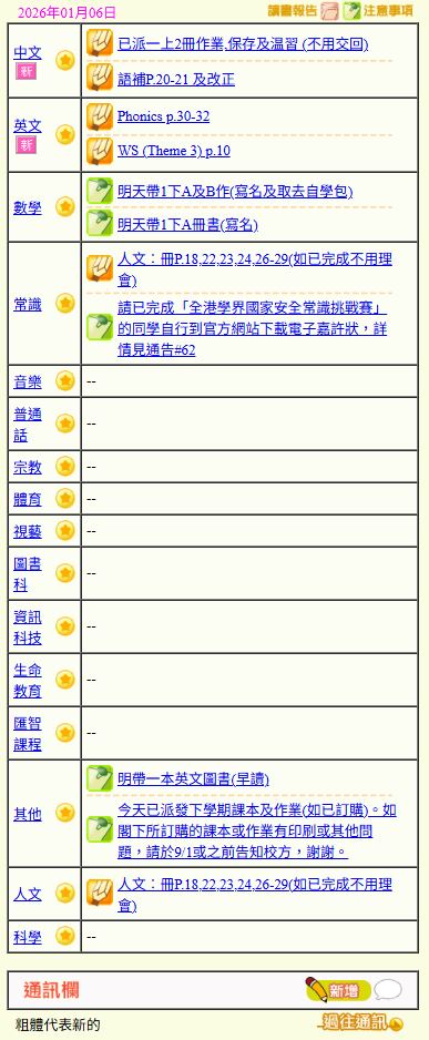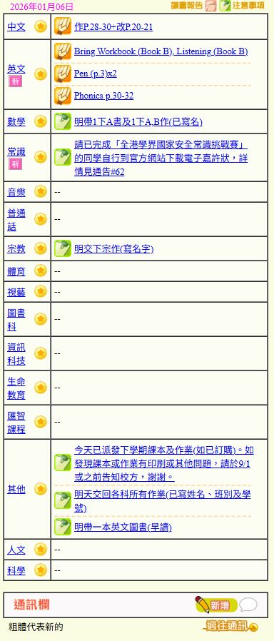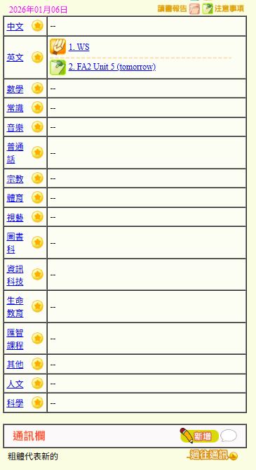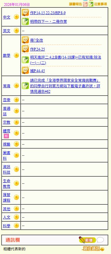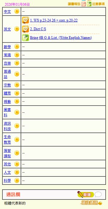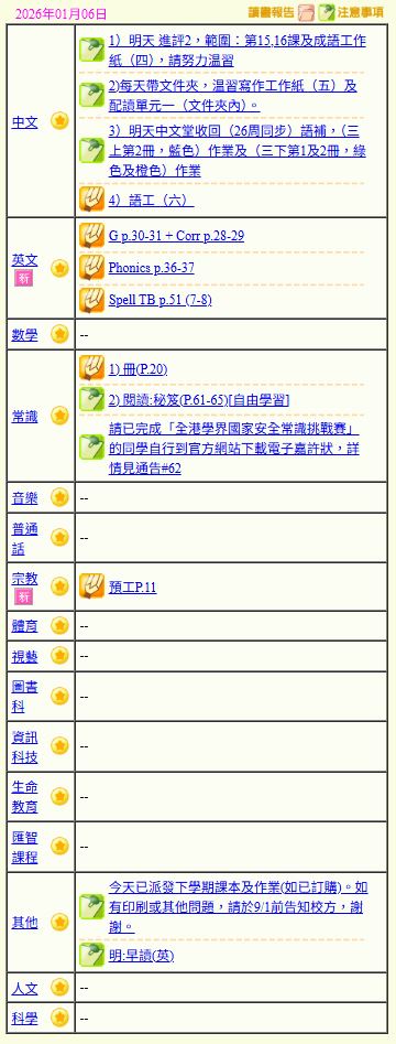 - 班別家課