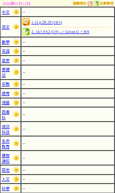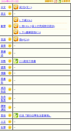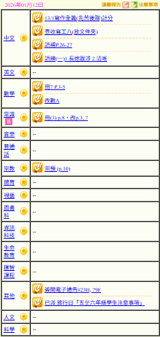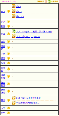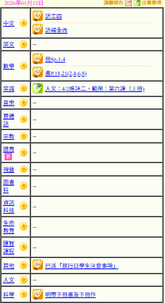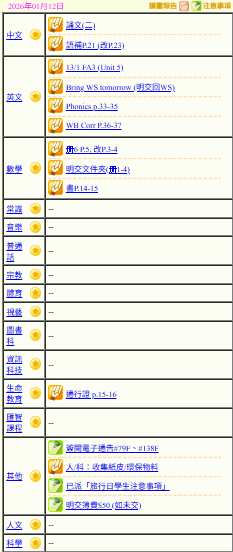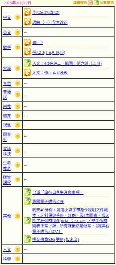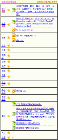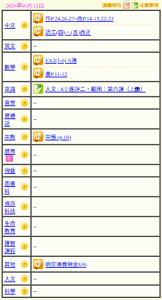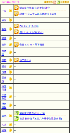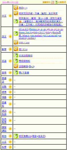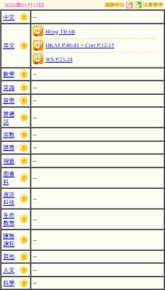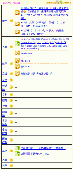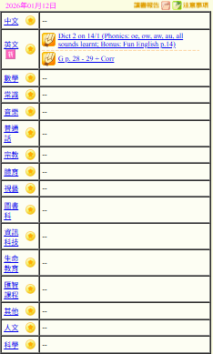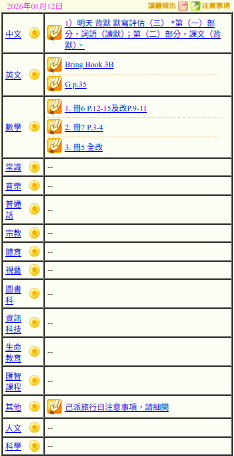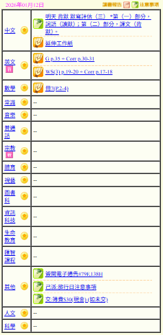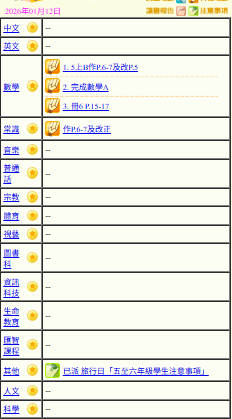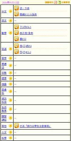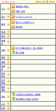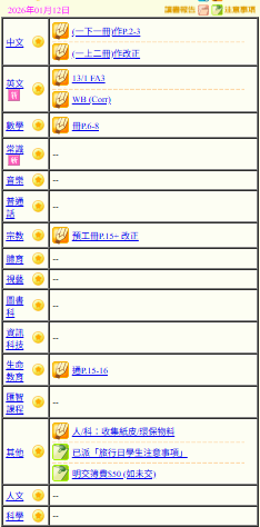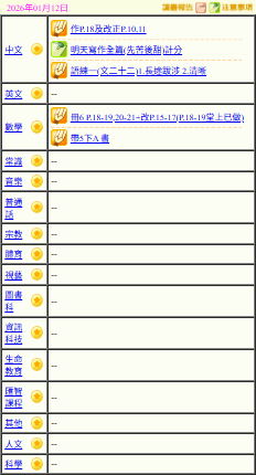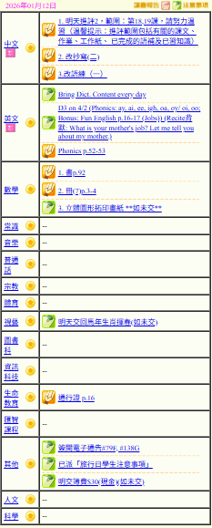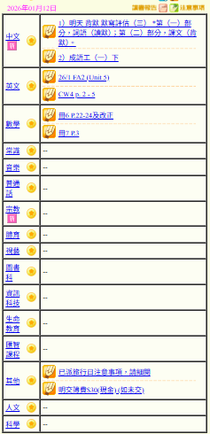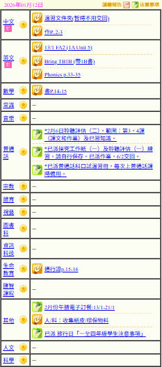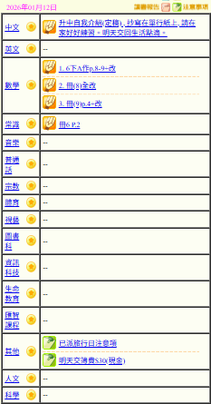- 班別家課
