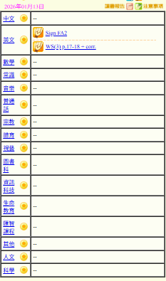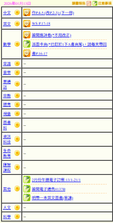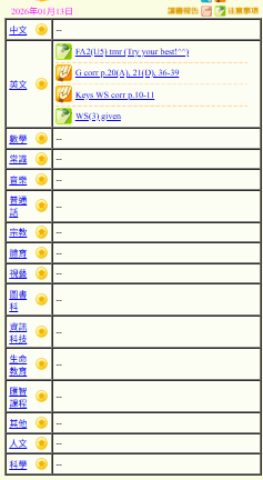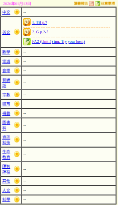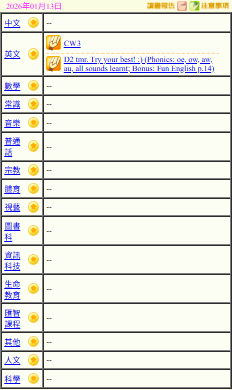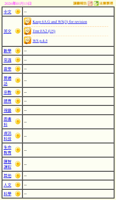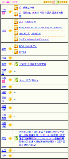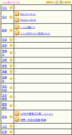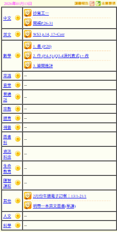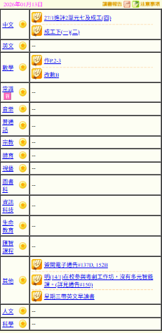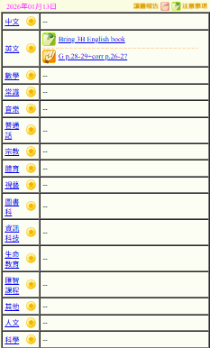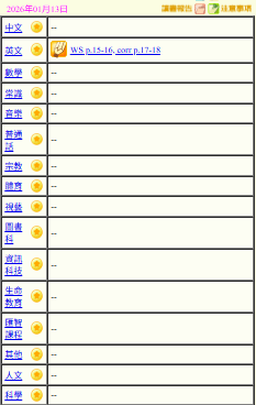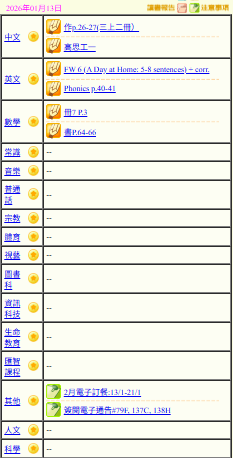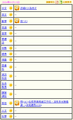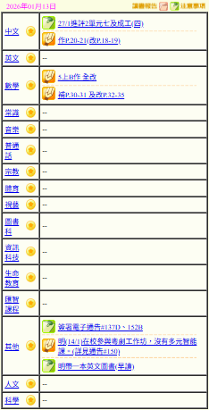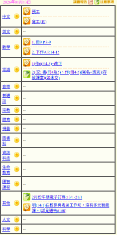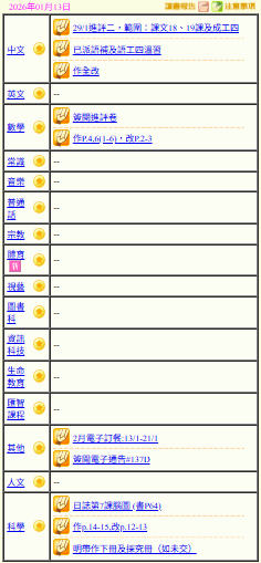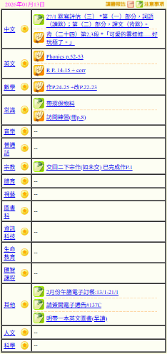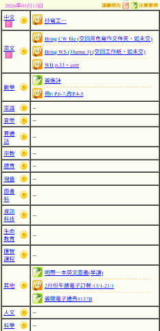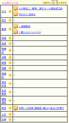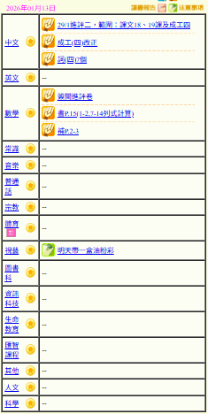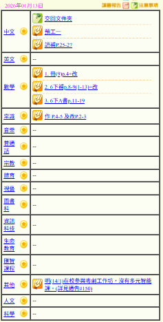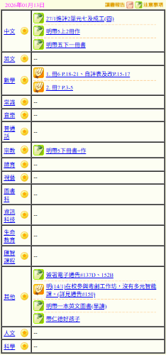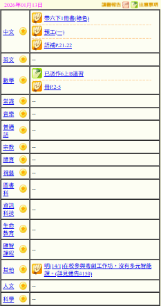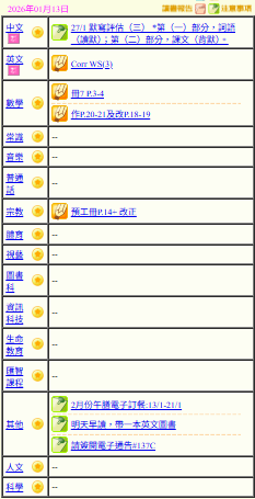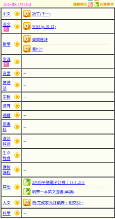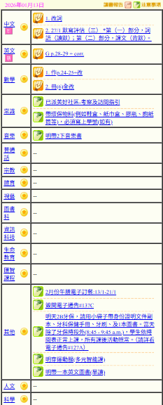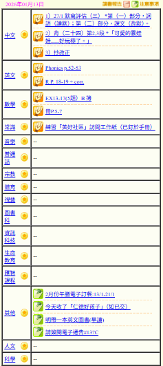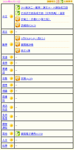 - 班別家課