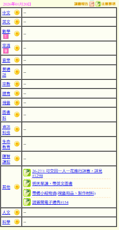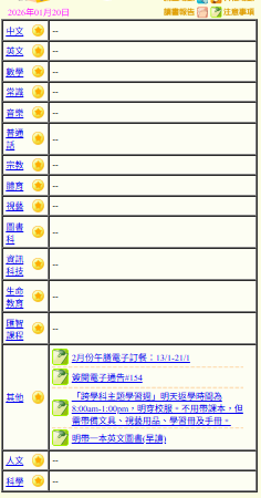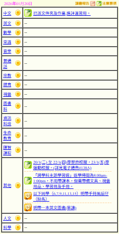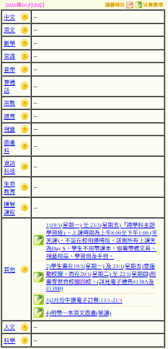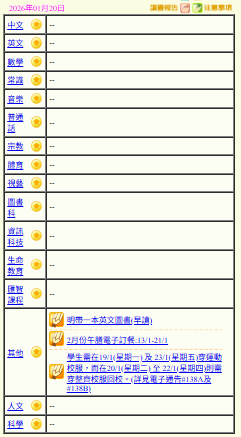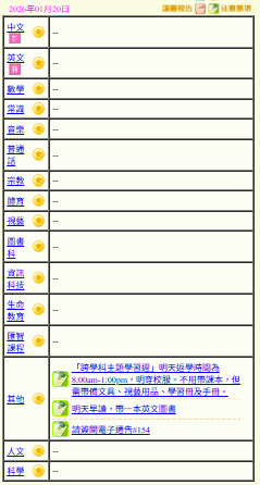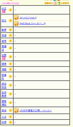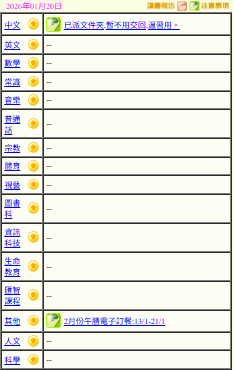 - 班別家課