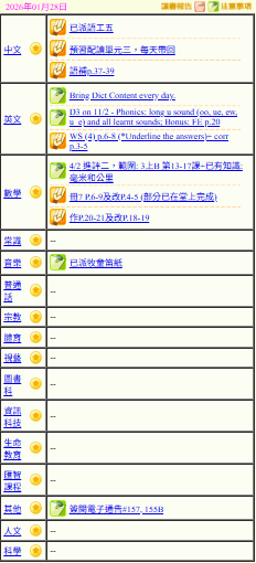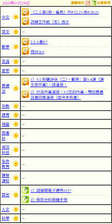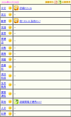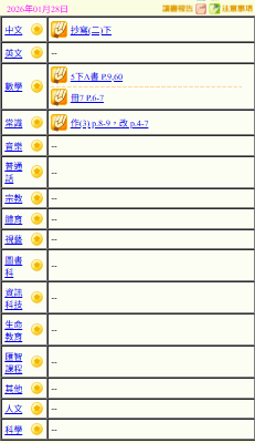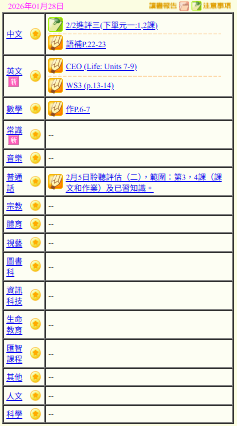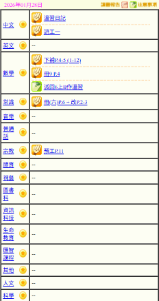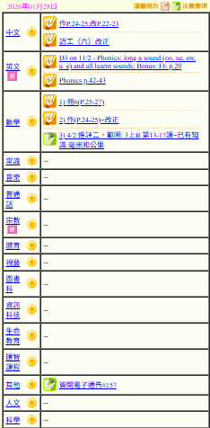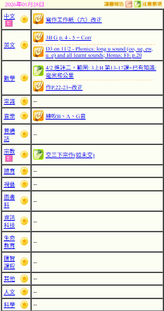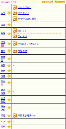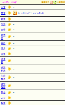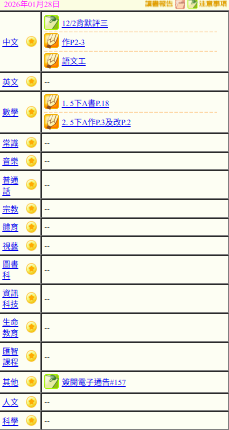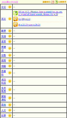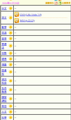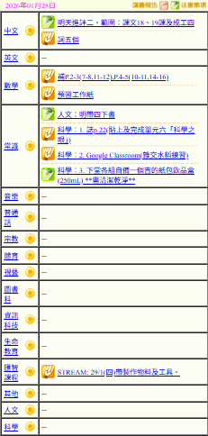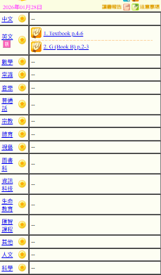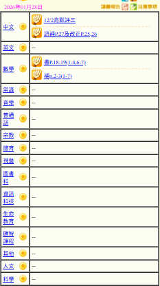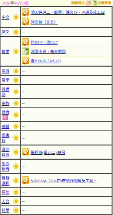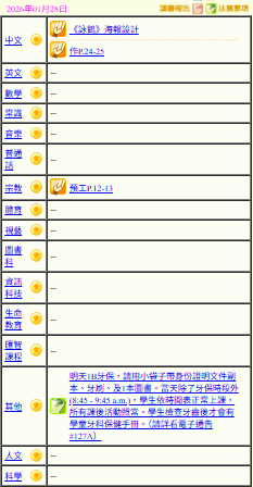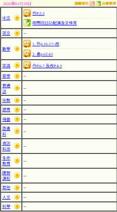 - 班別家課