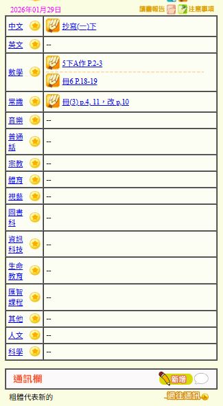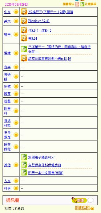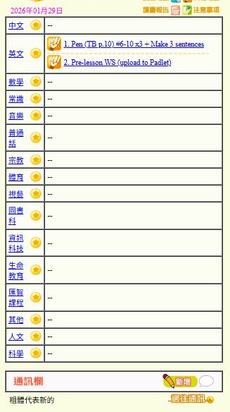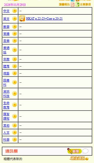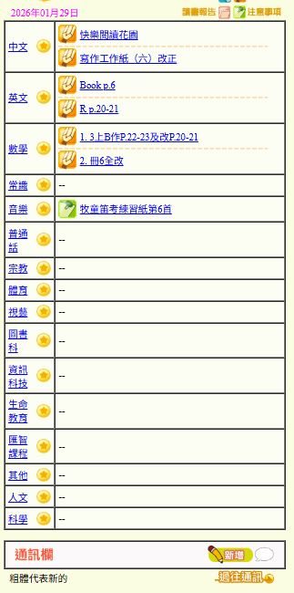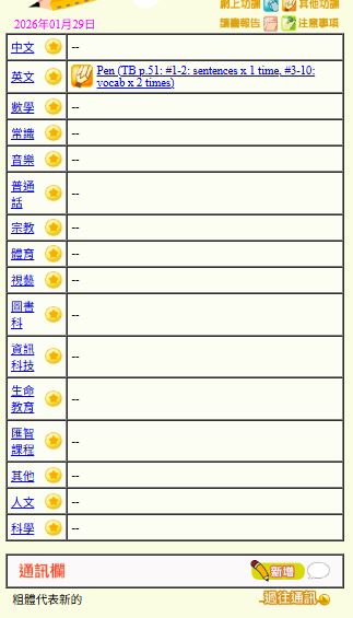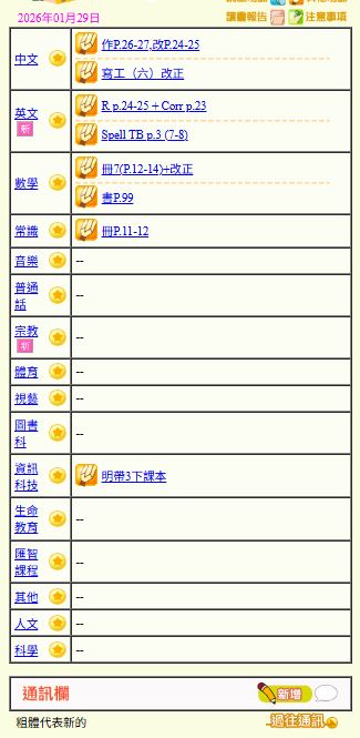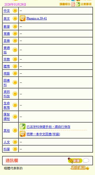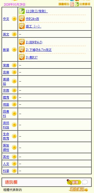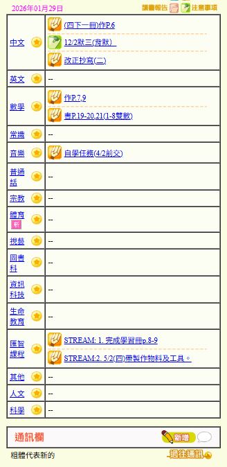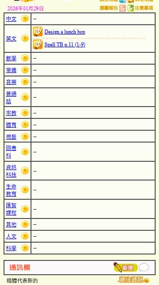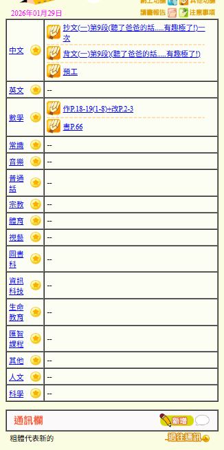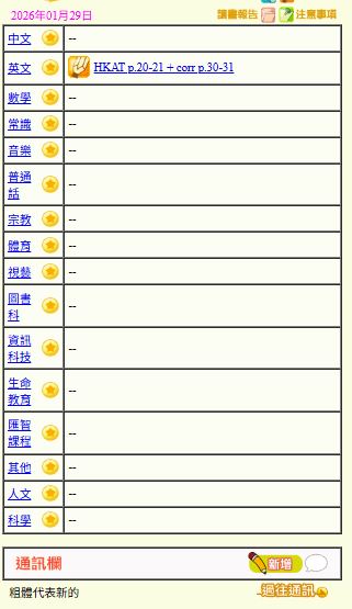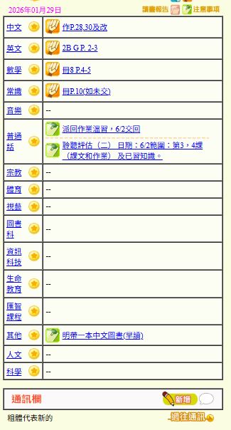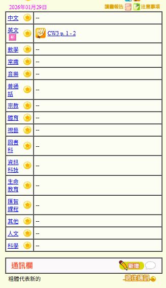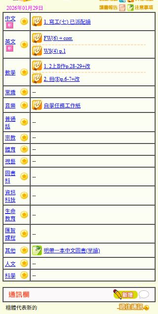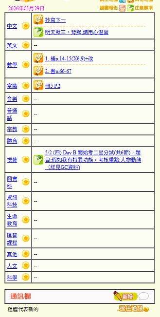 - 班別家課
