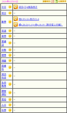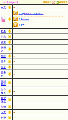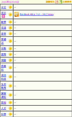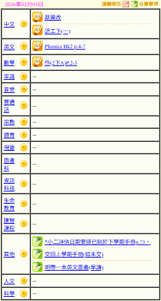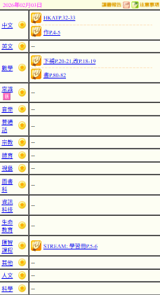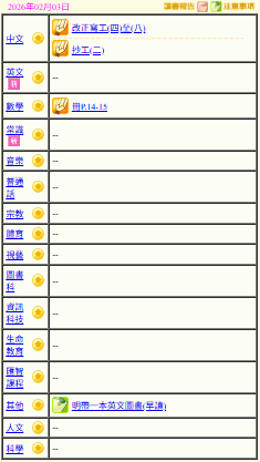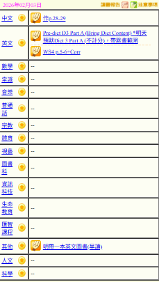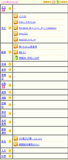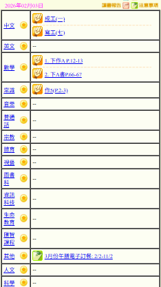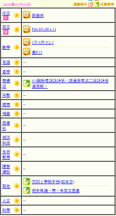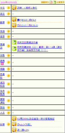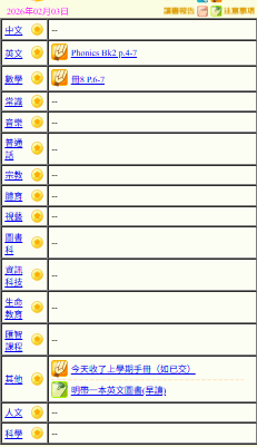 - 班別家課