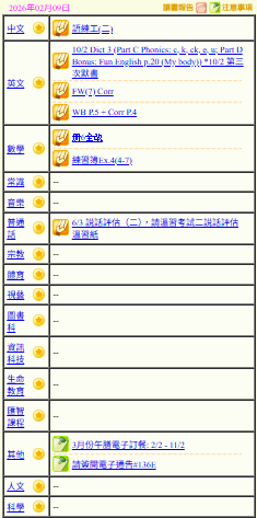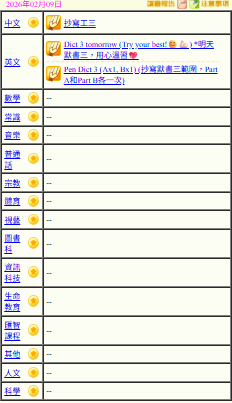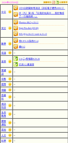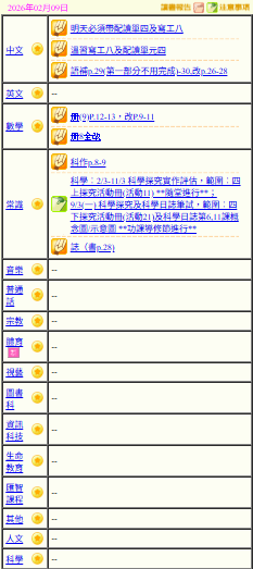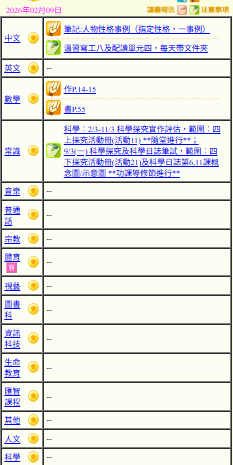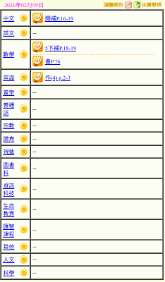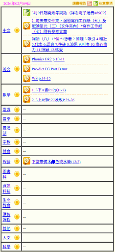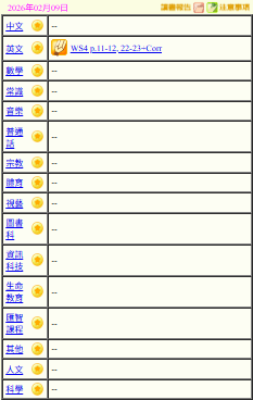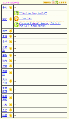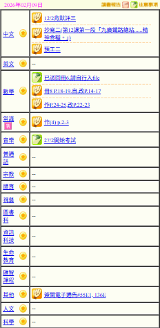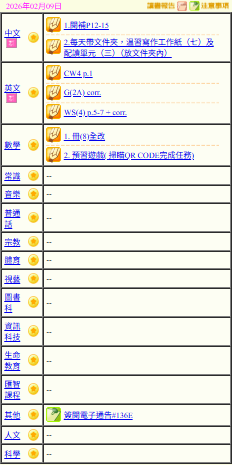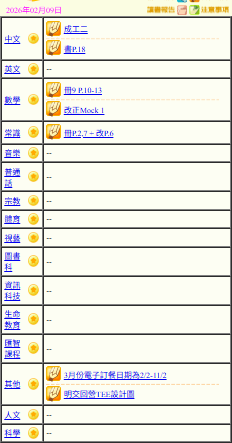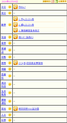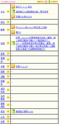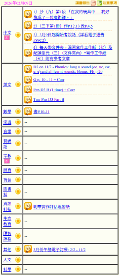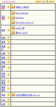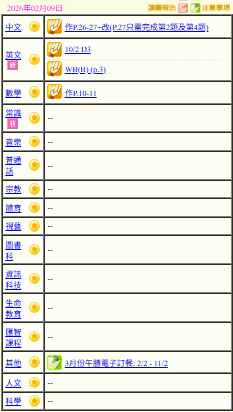 - 班別家課