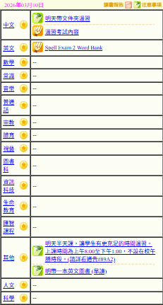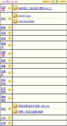- 班別家課