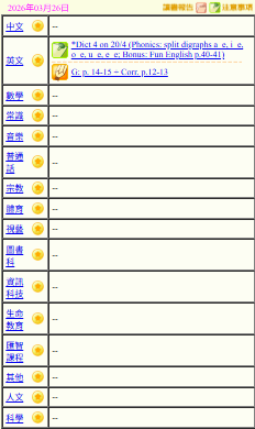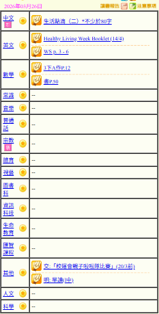 - 班別家課
