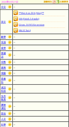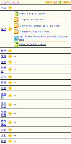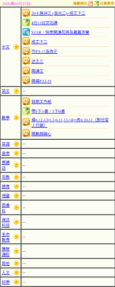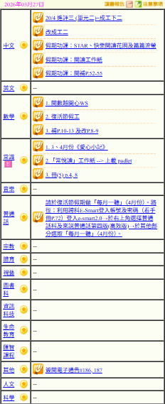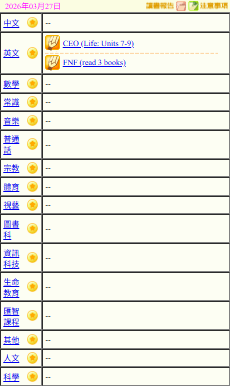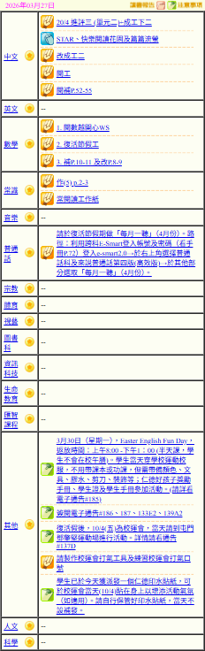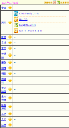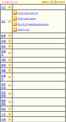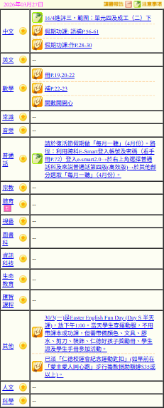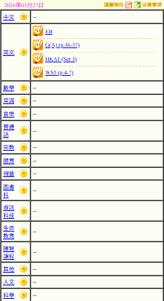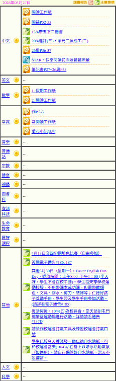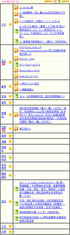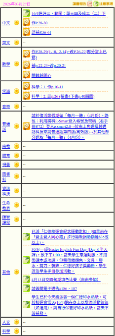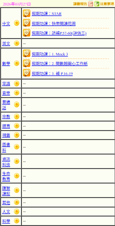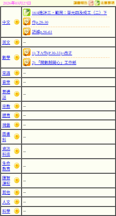- 班別家課