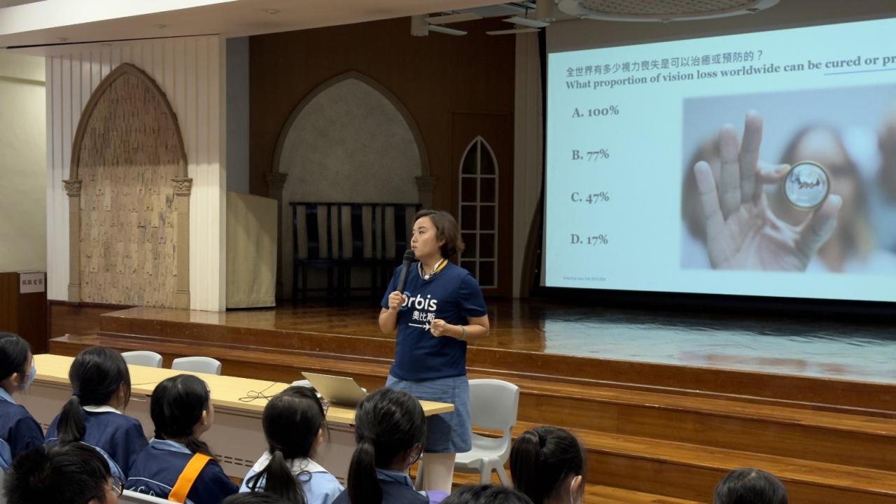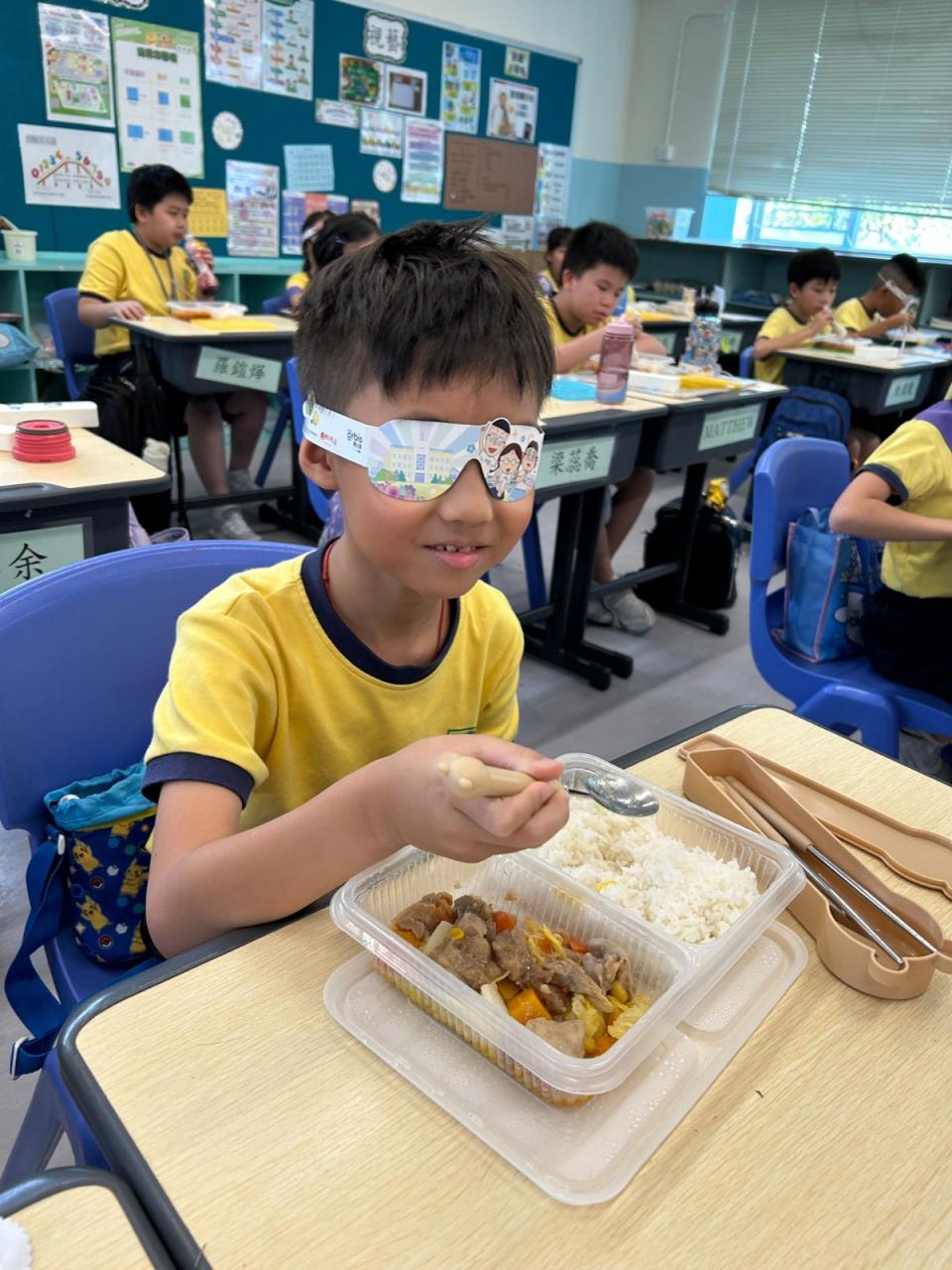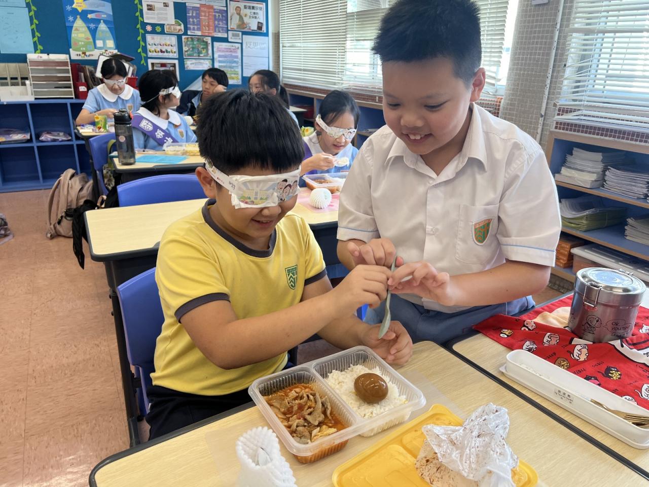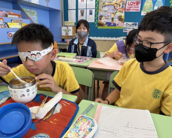 學校於10月13日舉辦了「蒙眼午餐」體驗活動,並於同日下午安排六年級同學參與奧比斯護眼講座,讓同學學習護眼知識及了解失明人士的需要,從而學會珍惜自己寶貴的視力及培養同理心,在日常生活中主動幫助更多有需要的人
