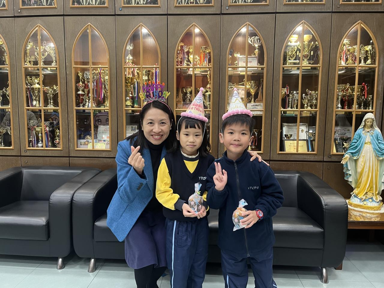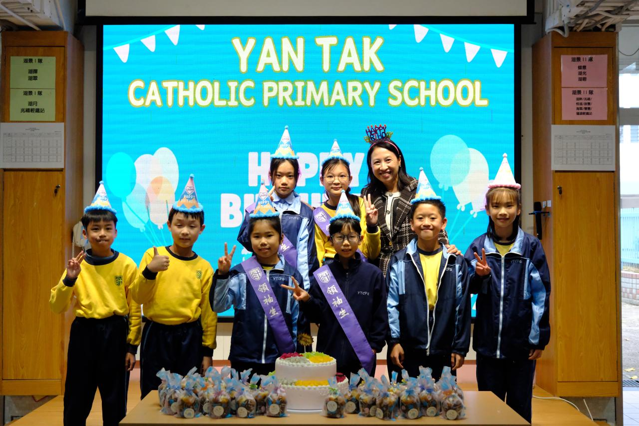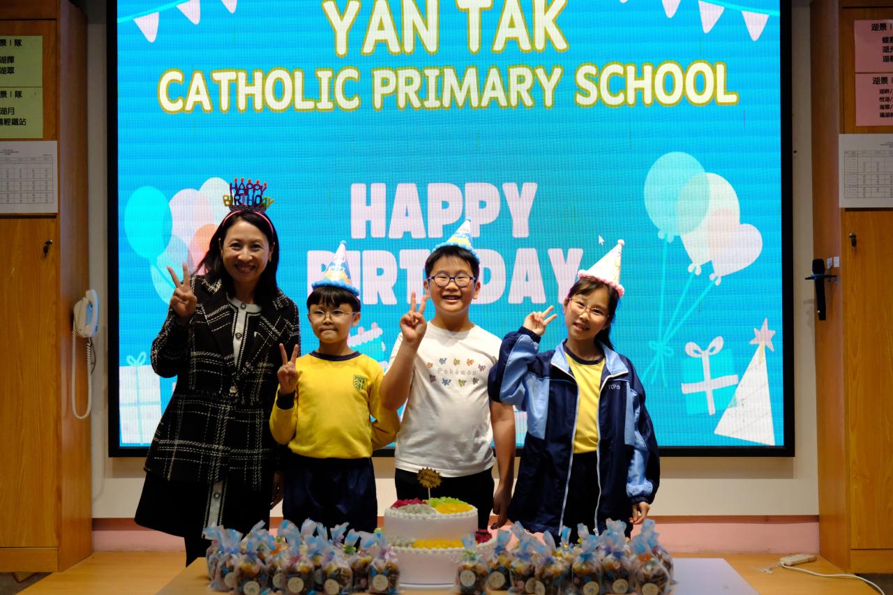 本校在3月3日(二)舉行了「生日祝福禮」(三月份),邀請所有在3月份生日的同學與校長一起唱生日歌和拍照,並互道祝福。每位仁德壽星更會獲派一個紙包蛋糕,大家都吃得十分滋味呢!