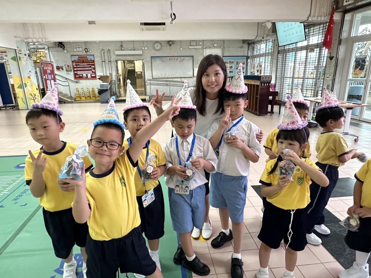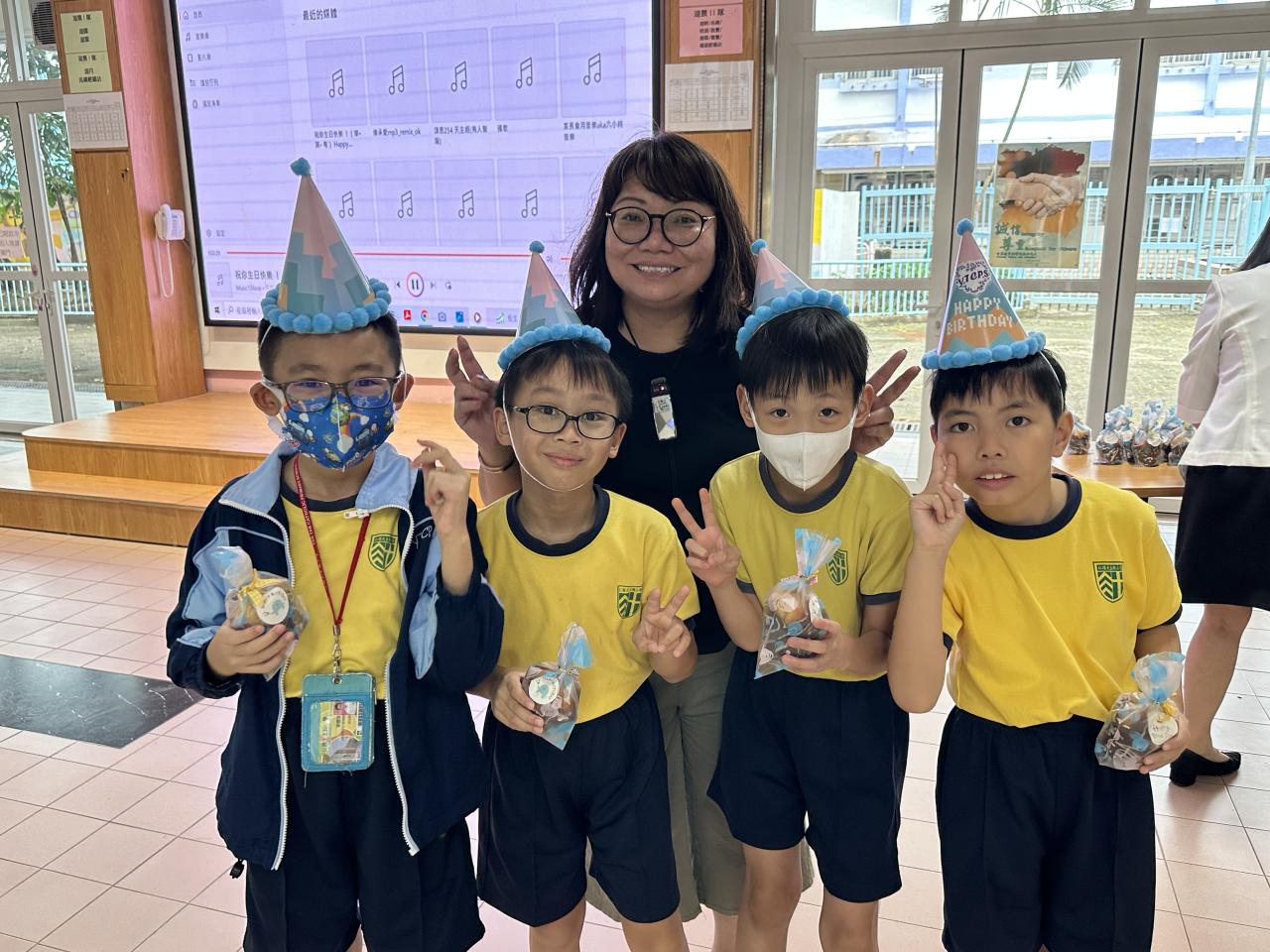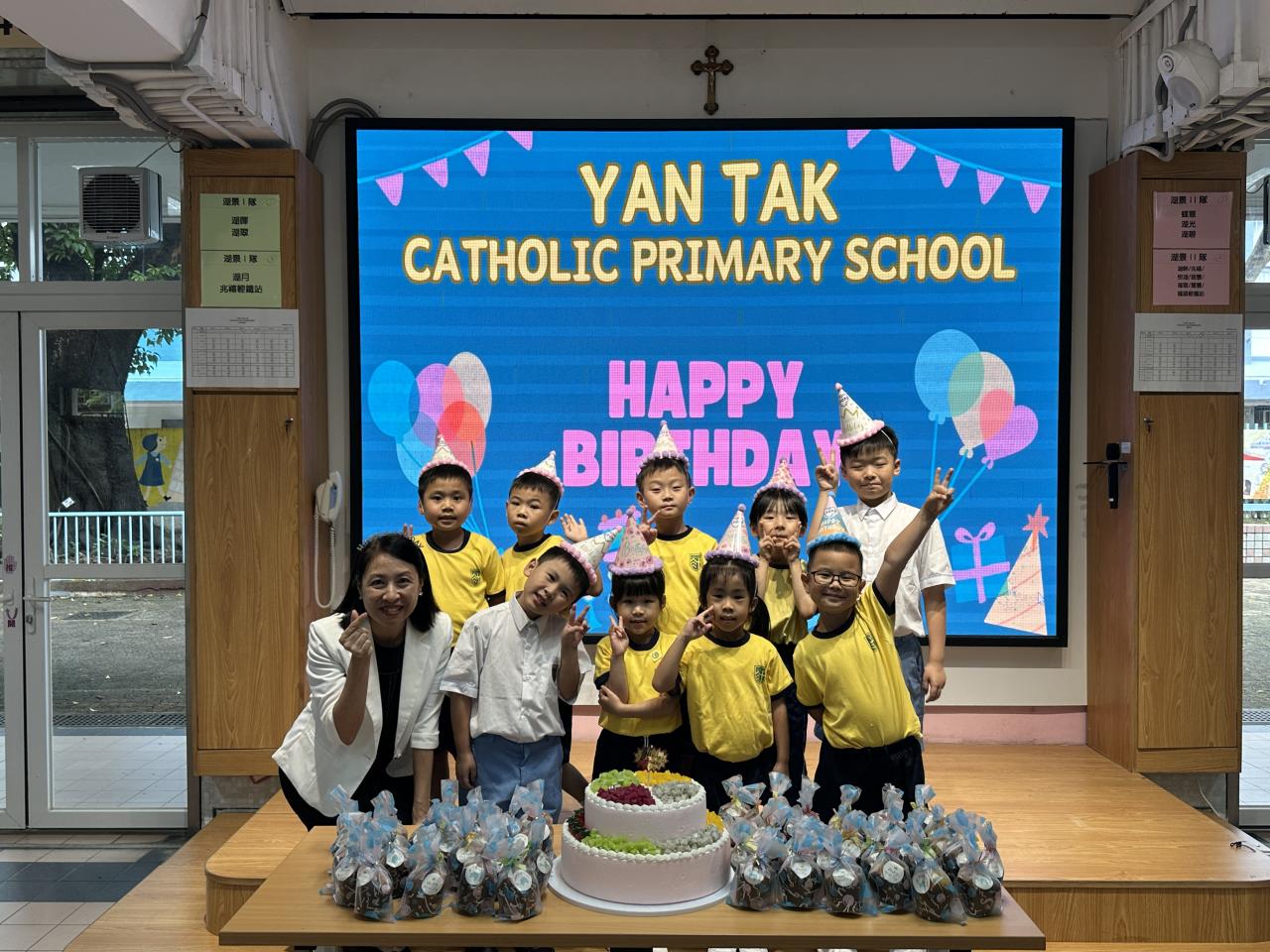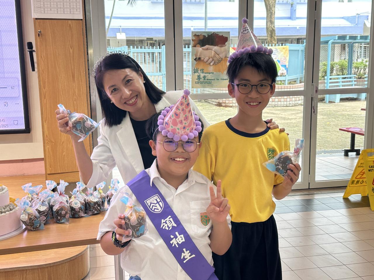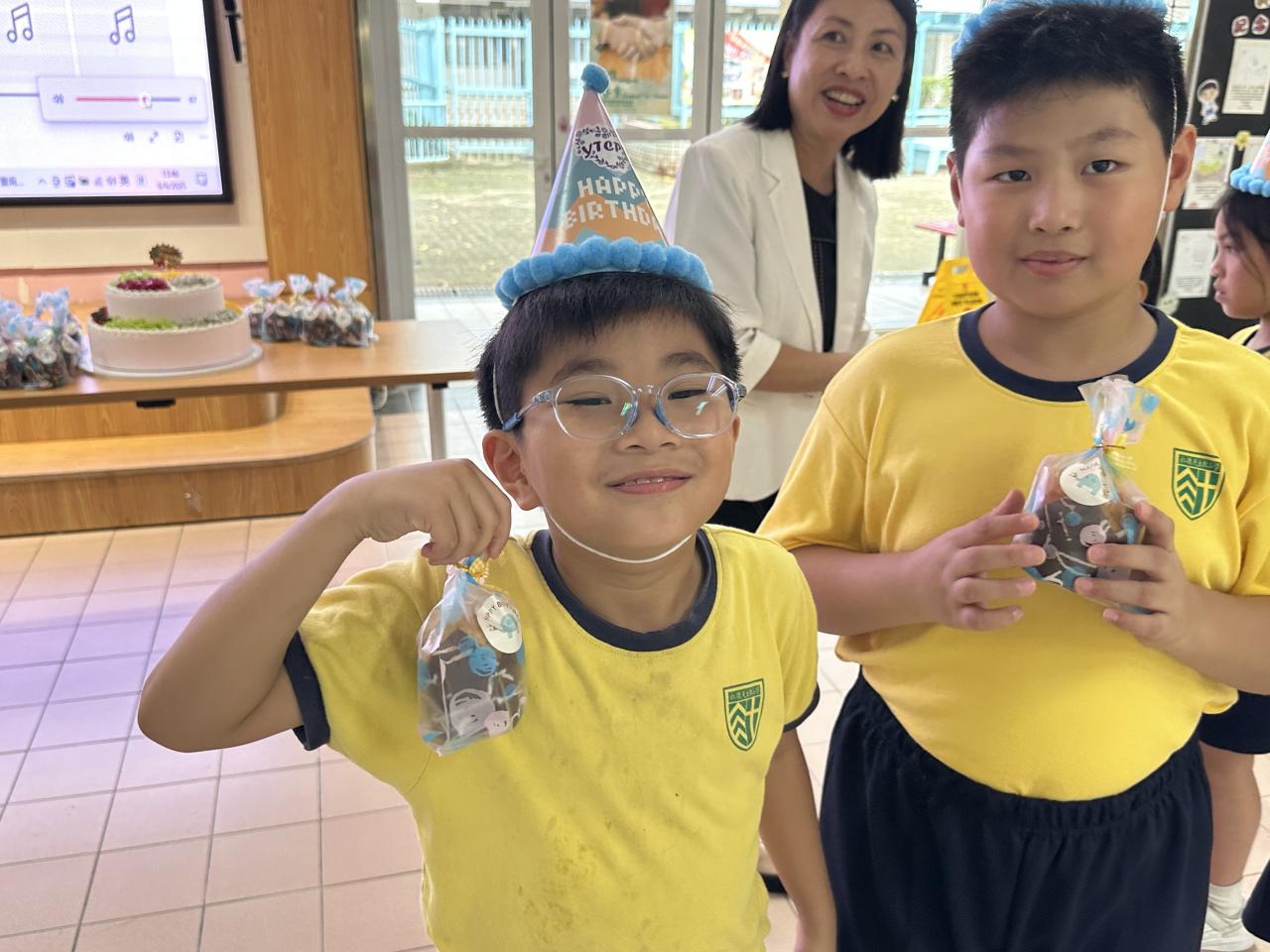 生日祝福禮(九月壽星同慶賀) 本校在9月9日(二)舉行了「生日祝福禮」(九月份),邀請所有在9月份生日的同學與校長一起唱生日歌和拍照,並互道祝福。每位仁德壽星更會獲派一個紙包蛋糕,大家都吃得十分滋味呢!