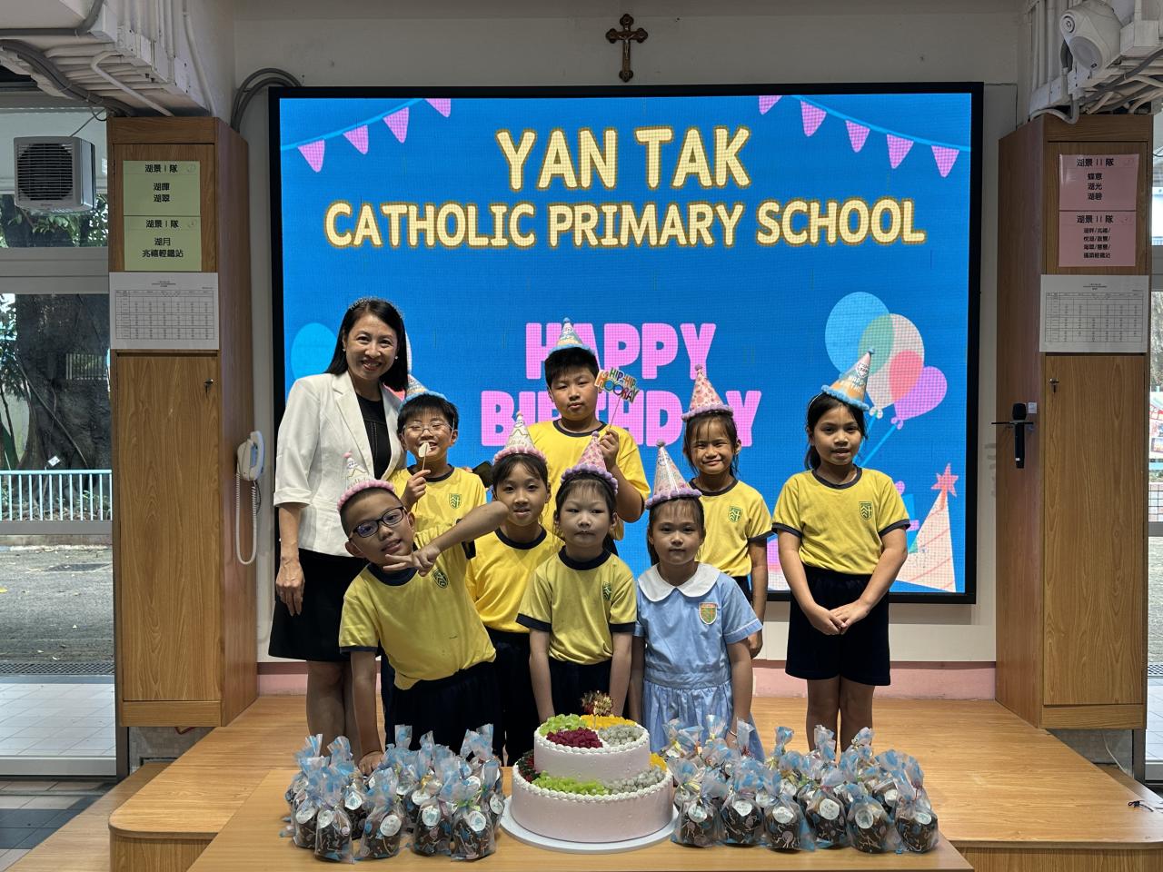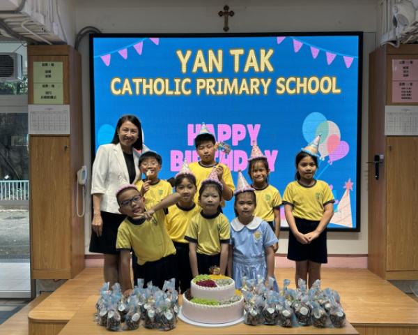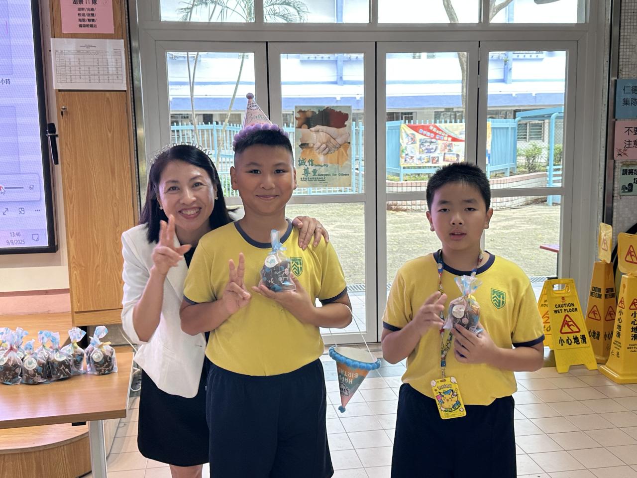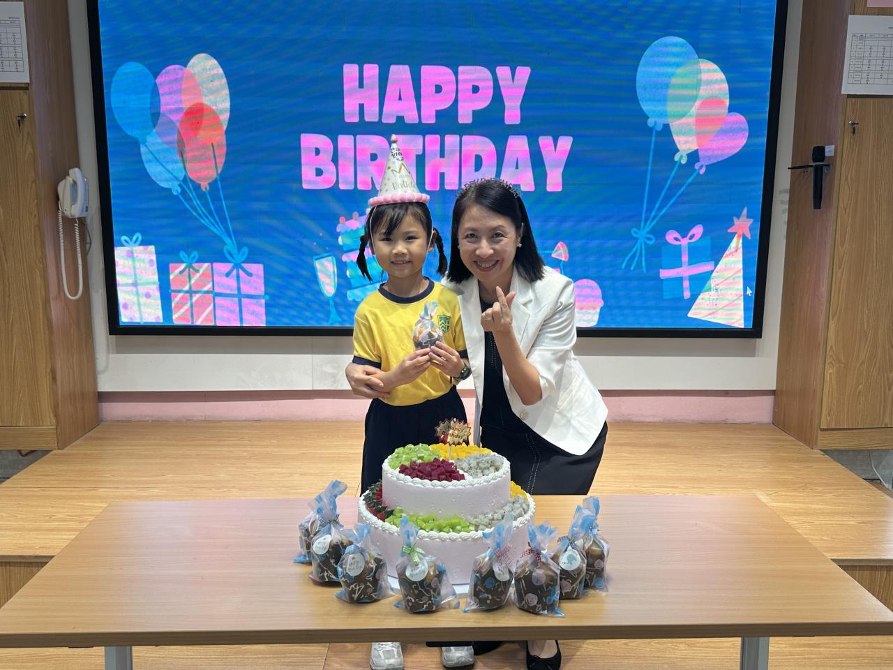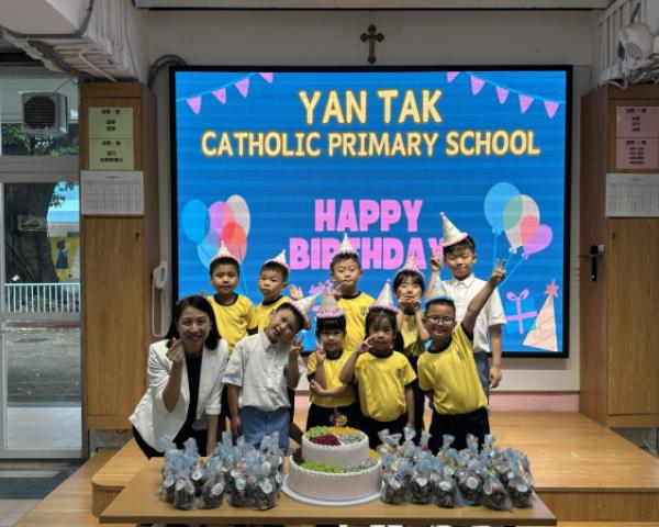 生日祝福禮(九月壽星同慶賀) 本校在9月9日(二)舉行了「生日祝福禮」(九月份),邀請所有在9月份生日的同學與校長一起唱生日歌和拍照,並互道祝福。每位仁德壽星更會獲派一個紙包蛋糕,大家都吃得十分滋味呢!