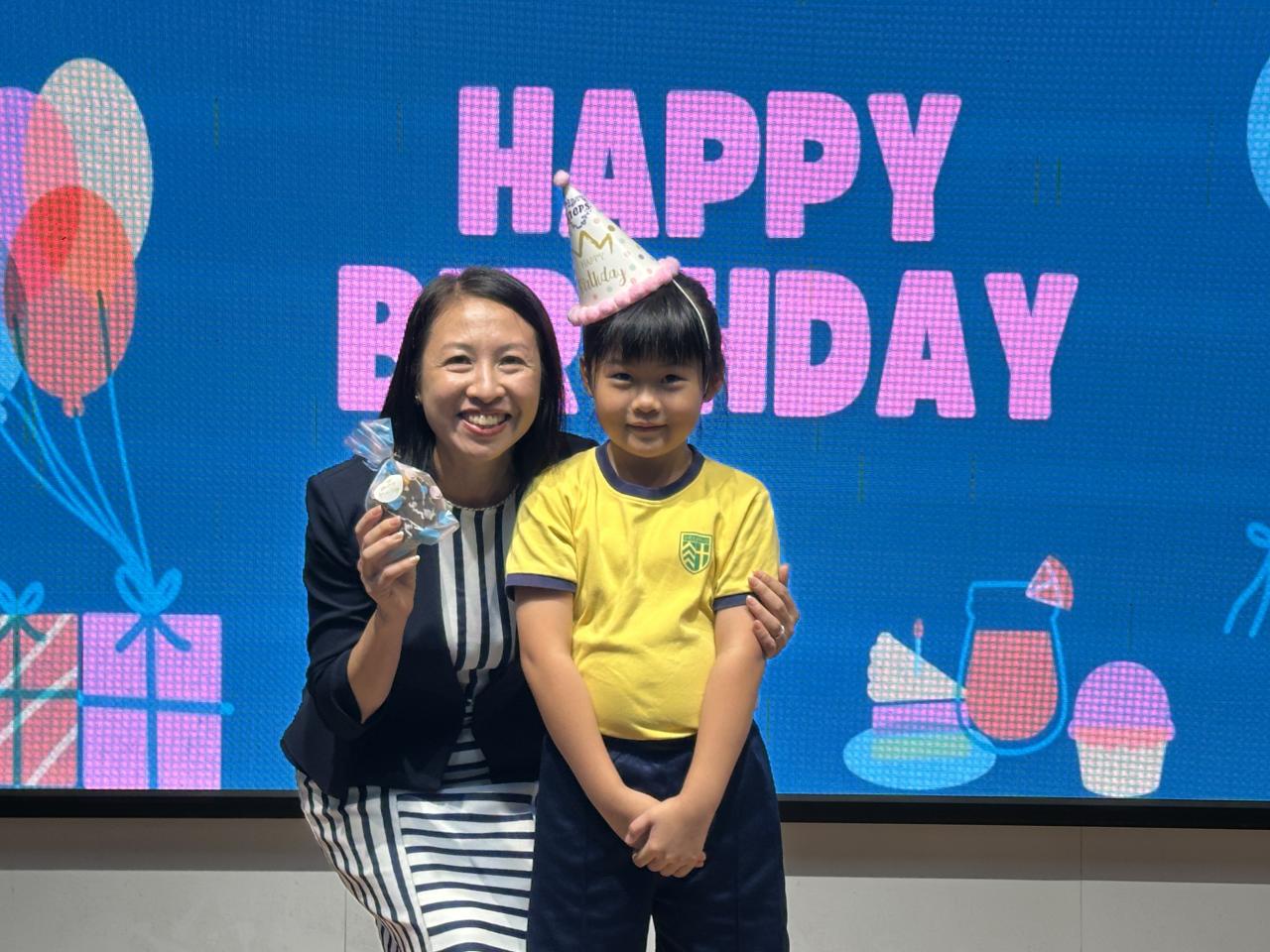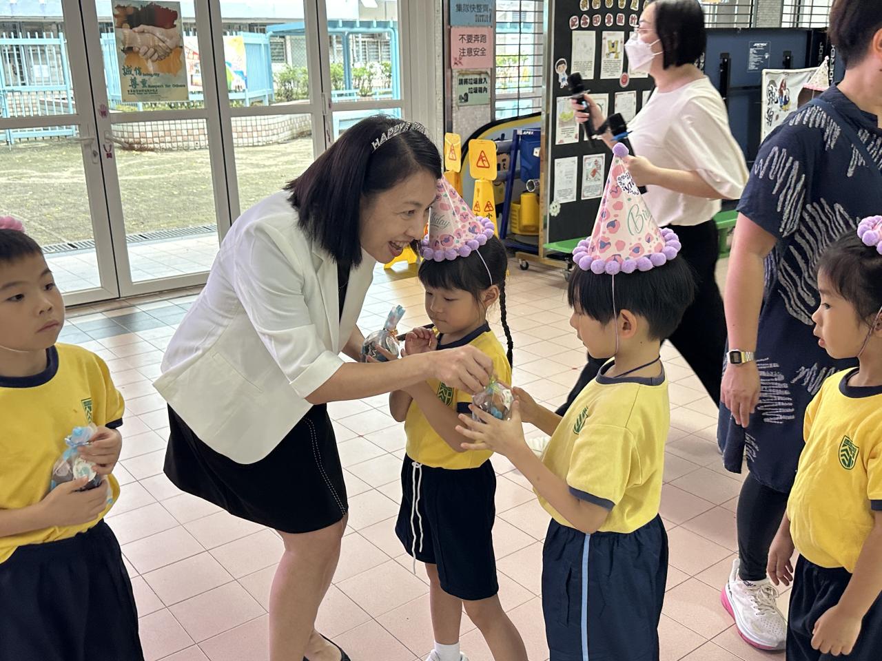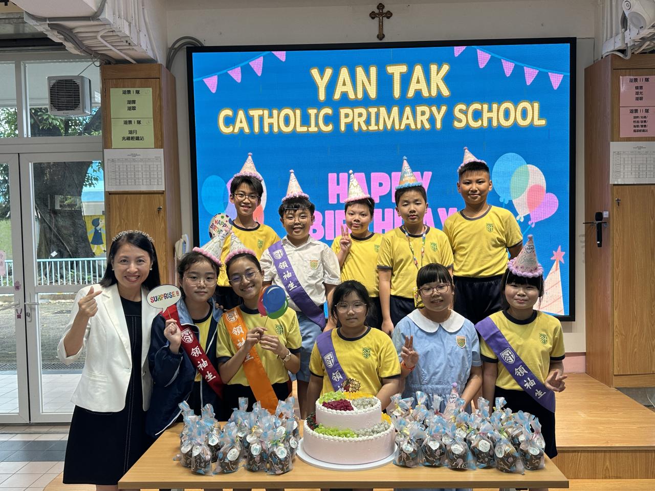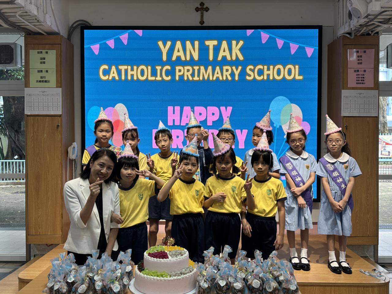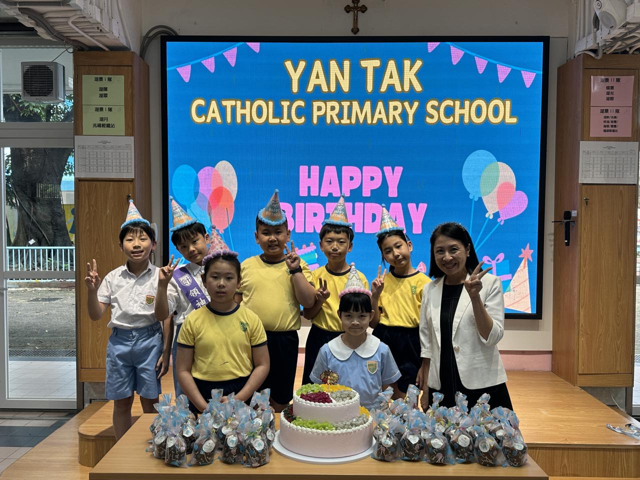 生日祝福禮(九月壽星同慶賀) 本校在9月9日(二)舉行了「生日祝福禮」(九月份),邀請所有在9月份生日的同學與校長一起唱生日歌和拍照,並互道祝福。每位仁德壽星更會獲派一個紙包蛋糕,大家都吃得十分滋味呢!
