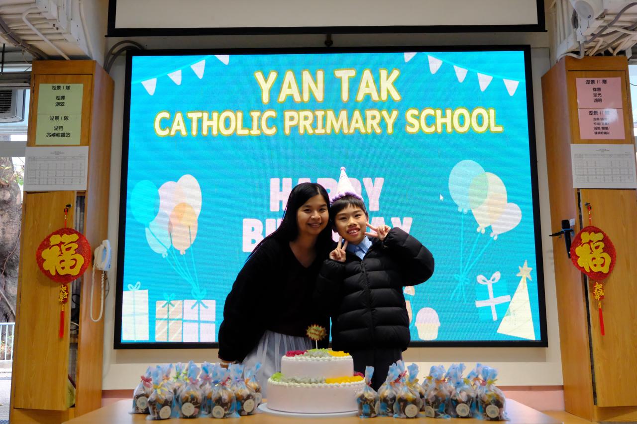 本校在2月3日(二)舉行了「生日祝福禮」(二月份),邀請所有在2月份生日的同學與校長一起唱生日歌和拍照,並互道祝福。每位仁德壽星更會獲派一個紙包蛋糕,大家都吃得十分滋味呢!