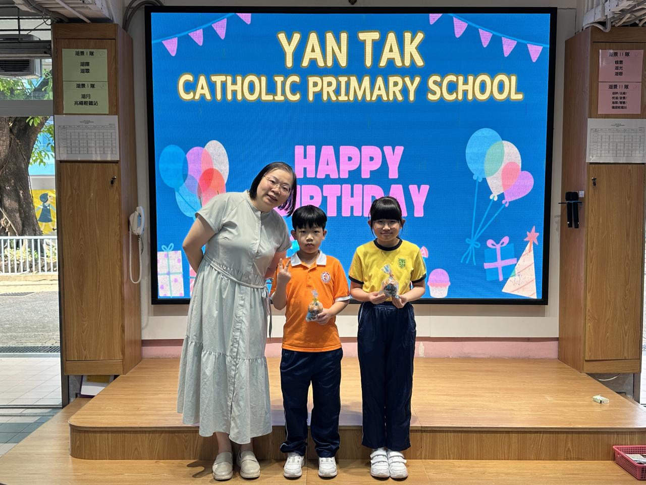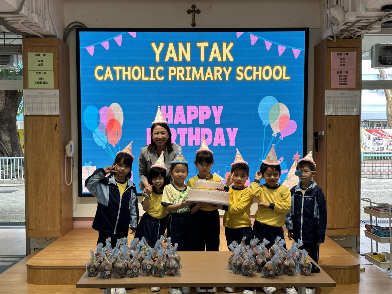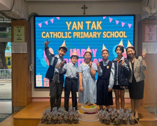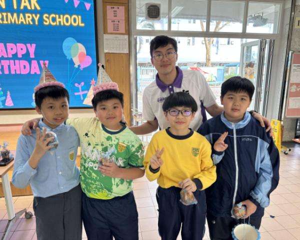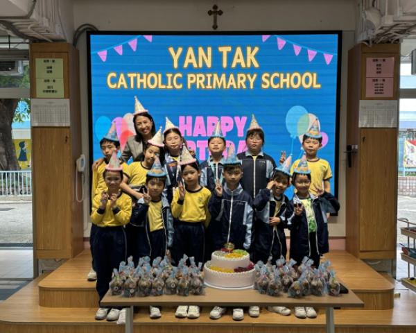 本校在3月24日(二)舉行了「生日祝福禮」(四月份),邀請所有在4月份生日的同學與校長一起唱生日歌和拍照,並互道祝福。每位仁德壽星更會獲派一個紙包蛋糕,大家都吃得十分滋味呢!