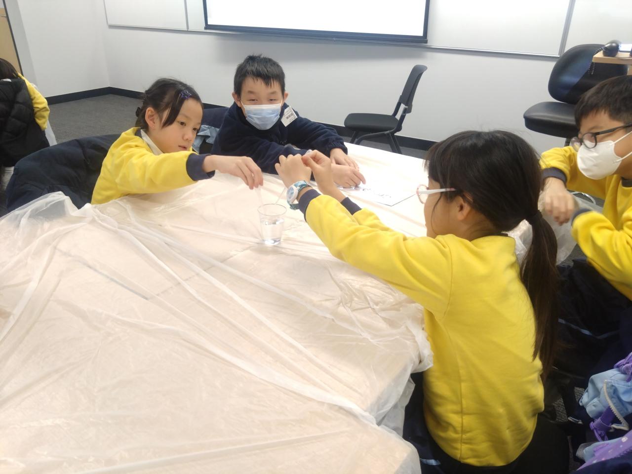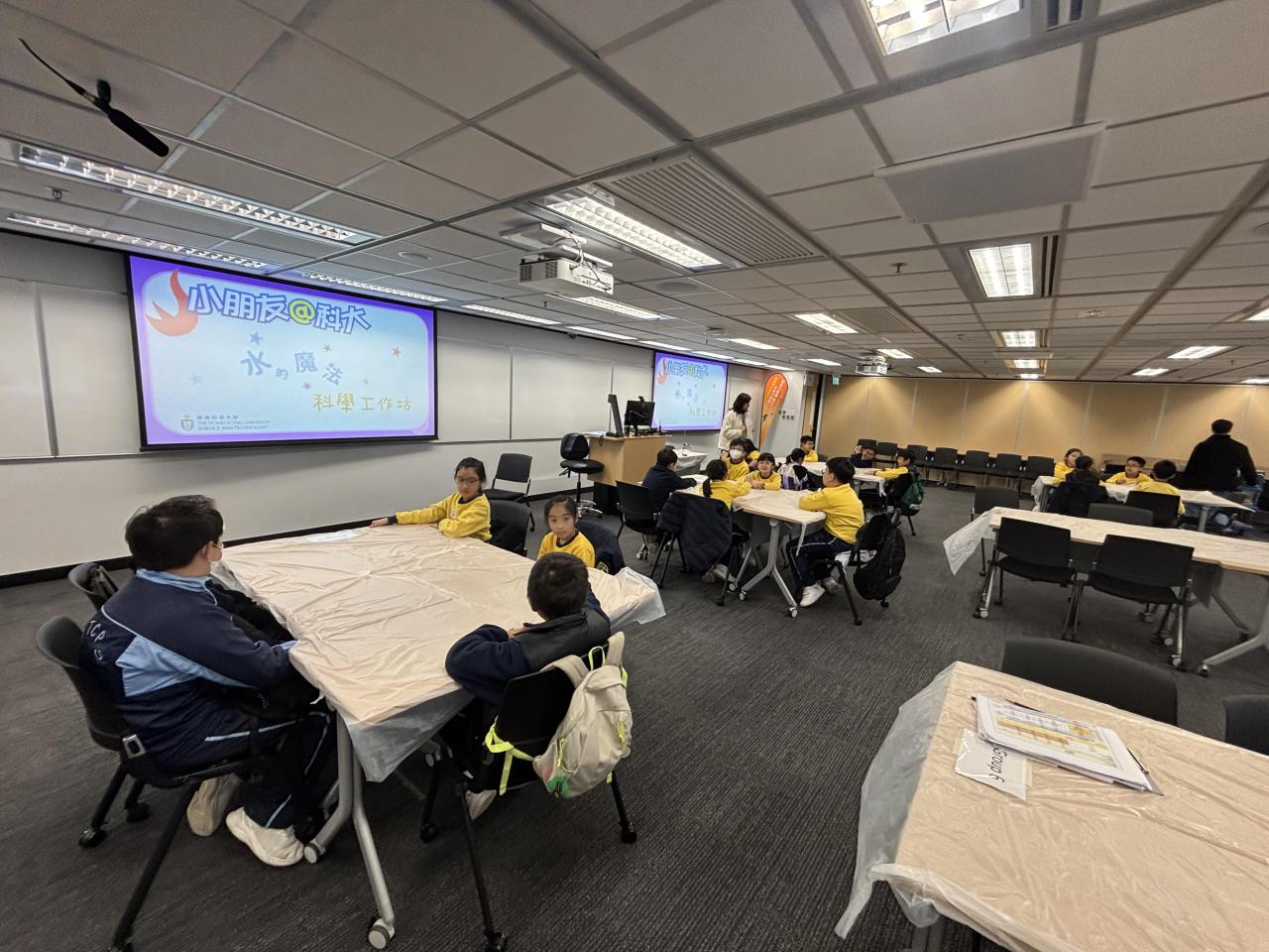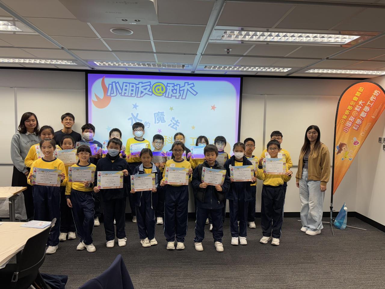 本校部分四至五年級學生參加由香港科技大學資優教育發展中心主辦,田家炳基金會贊助的「小朋友@科大」科學工作坊。導師帶領一眾學生走進水的魔法世界,讓他們化身成為魔法師深入探索水粒子,並在課堂上透過進行不同互動及富趣味性的探究活動來認識水的濃度與密度概念。