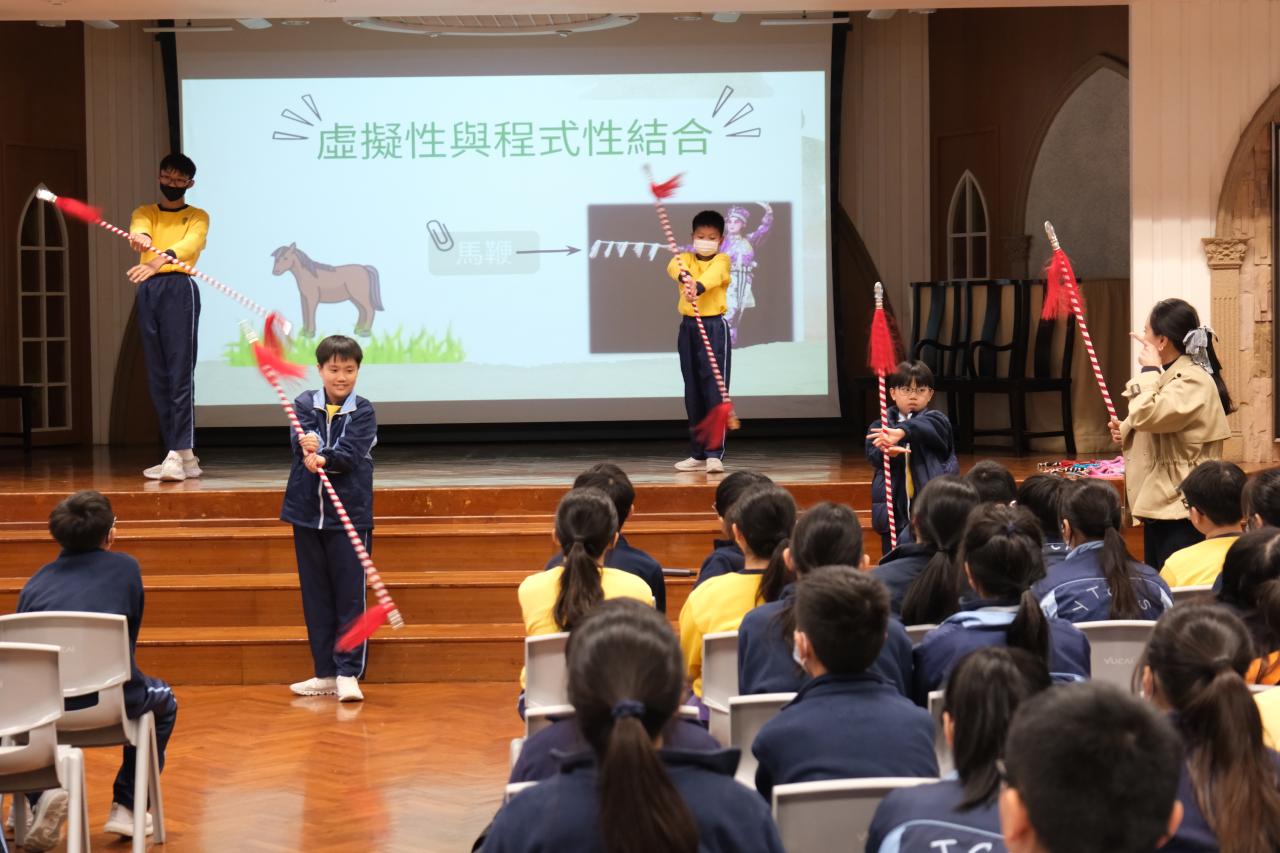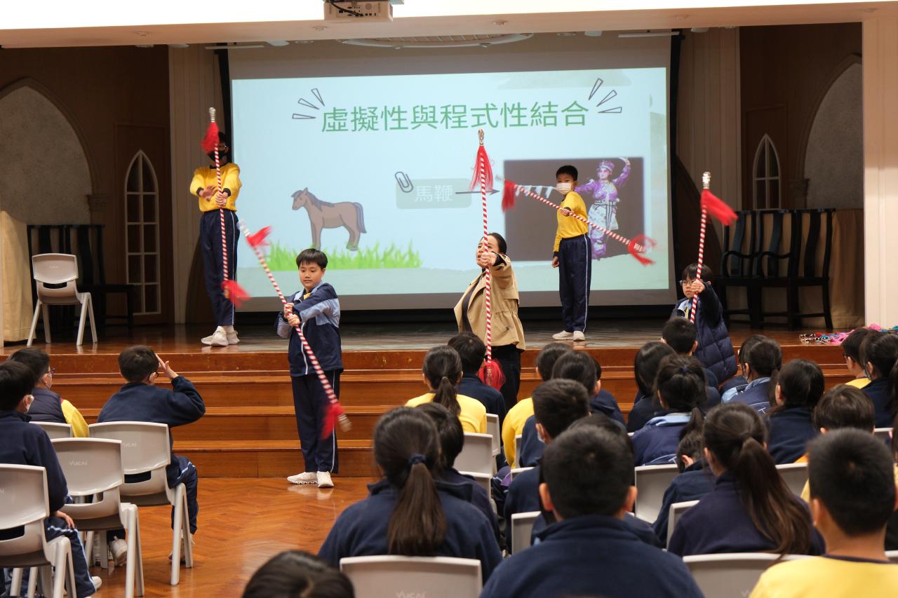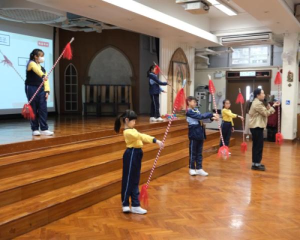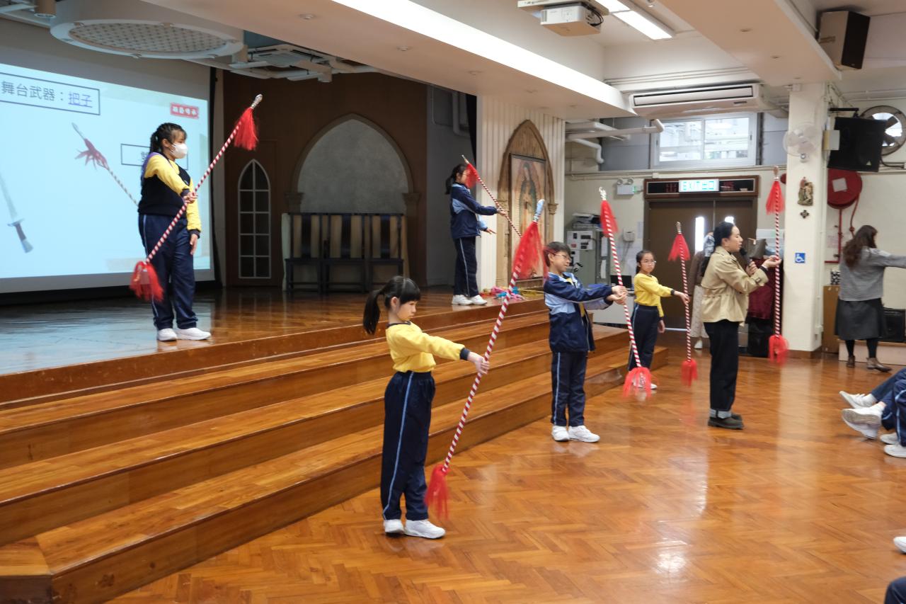 五年級及六年級學生參加了由研藝中心贊助的「粵劇四功五法」工作坊,學生不但能認識聯合國教科文組織的非物質文化遺產,更能親身體驗粵劇藝術的特色。
