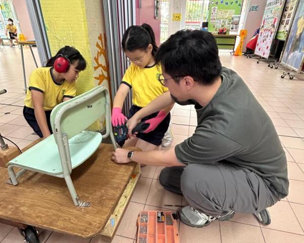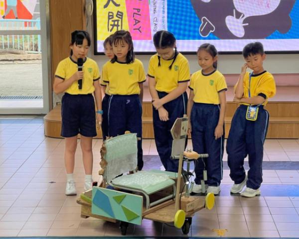 24位四年級學生參與了六節由「PMQ 元創方」舉辦的創意教育項目「Senses in Play」校園工作坊。他們透過七種感官探索周遭環境,由專業導師帶領孩子經歷「設計思維」,並透過建築、藝術和STEAM的跨界體驗,設計及創作了四輛校園電動車。他們更於10月25日進行了成果分享日,邀請了校長及家長體驗校園電動車,漫遊校園。