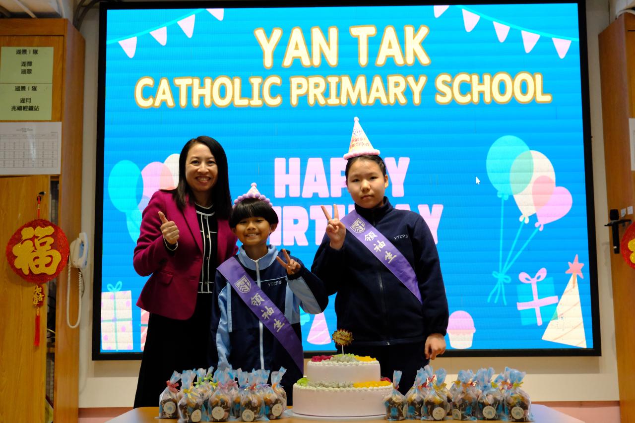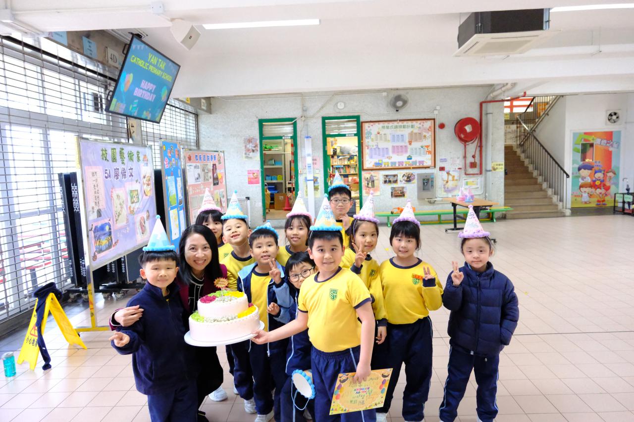 本校在2月3日(二)舉行了「生日祝福禮」(二月份),邀請所有在2月份生日的同學與校長一起唱生日歌和拍照,並互道祝福。每位仁德壽星更會獲派一個紙包蛋糕,大家都吃得十分滋味呢!