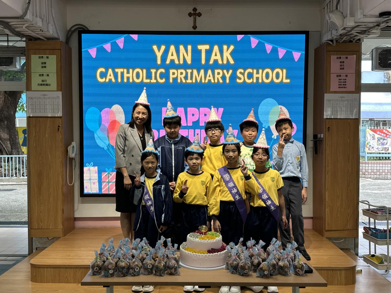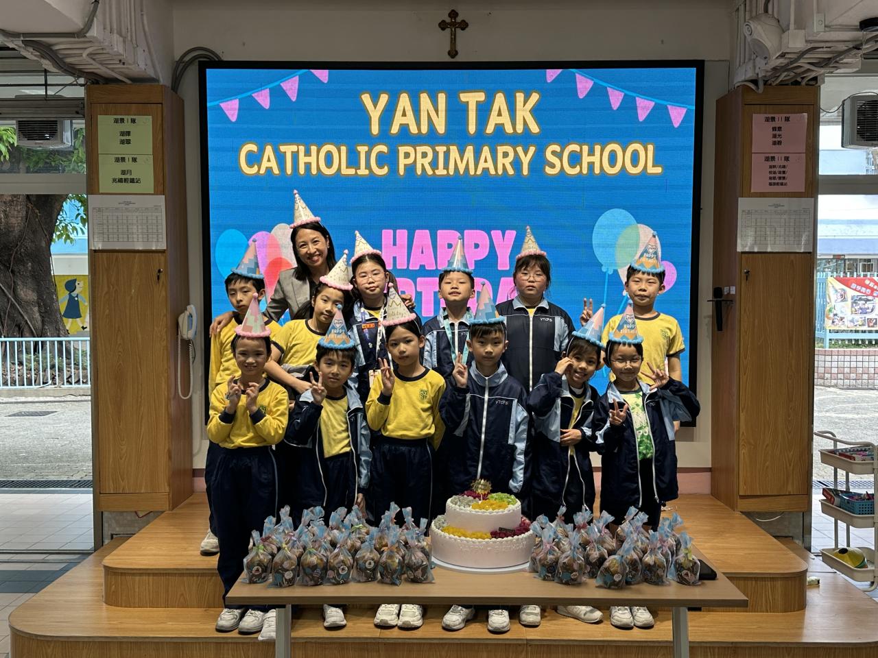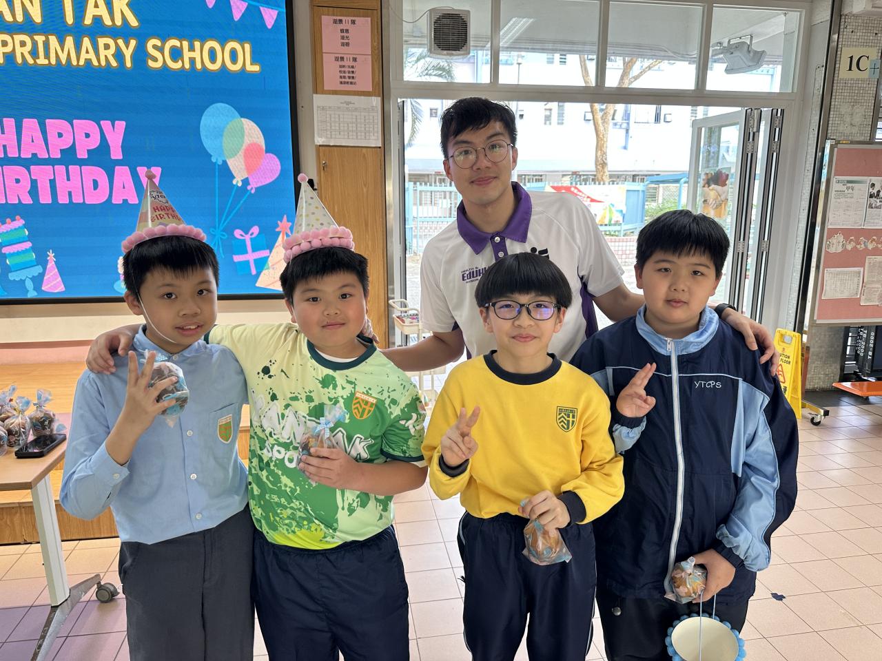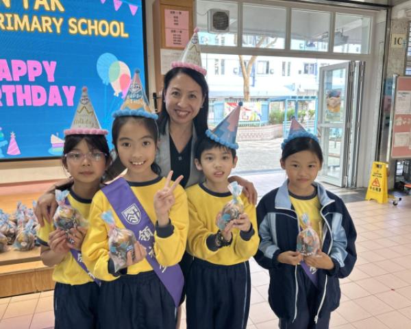 本校在3月24日(二)舉行了「生日祝福禮」(四月份),邀請所有在4月份生日的同學與校長一起唱生日歌和拍照,並互道祝福。每位仁德壽星更會獲派一個紙包蛋糕,大家都吃得十分滋味呢!