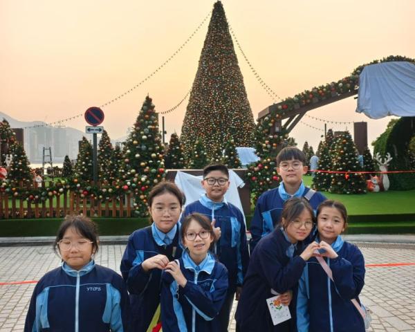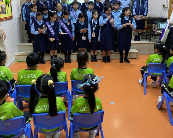 聖誕是一個喜樂的節日,紀念救主耶穌基督降生成人。為了傳揚這個喜訊,本校46位小三至小六同學及老師們分別於12 月上旬到訪蝴蝶邨內的兩間幼稚園,以及在12月5日乘坐開蓬巴士前往西九文化區,以歌聲傳播正能量及愛心傳遞天主是愛的好消息。