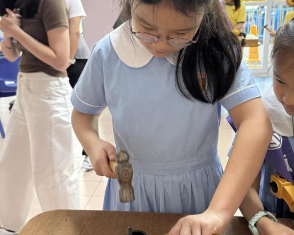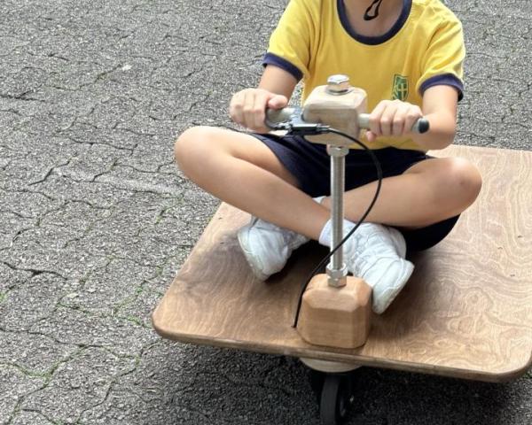 24位四年級學生參與了六節由「PMQ 元創方」舉辦的創意教育項目「Senses in Play」校園工作坊。他們透過七種感官探索周遭環境,由專業導師帶領孩子經歷「設計思維」,並透過建築、藝術和STEAM的跨界體驗,設計及創作了四輛校園電動車。他們更於10月25日進行了成果分享日,邀請了校長及家長體驗校園電動車,漫遊校園。