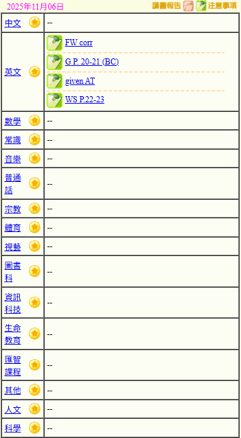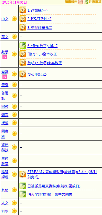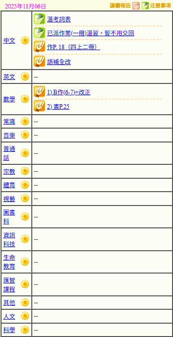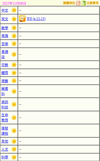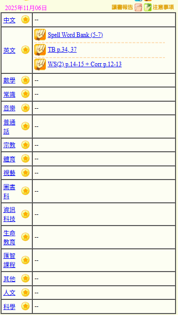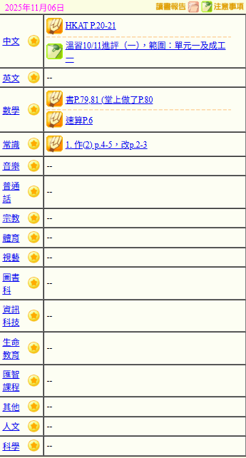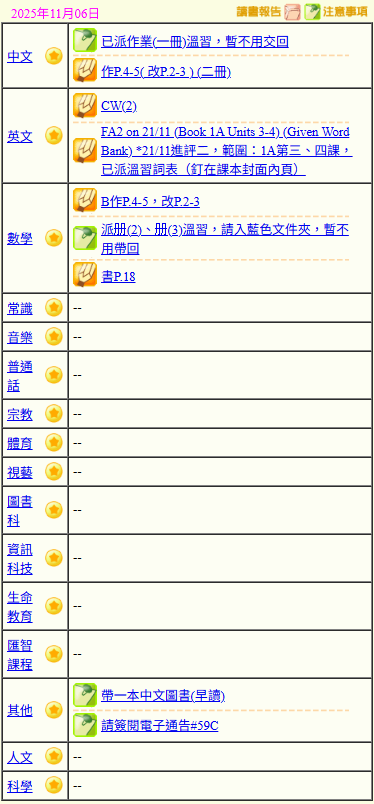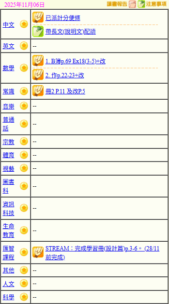- 班別家課