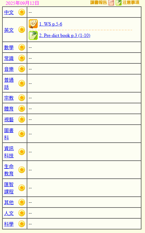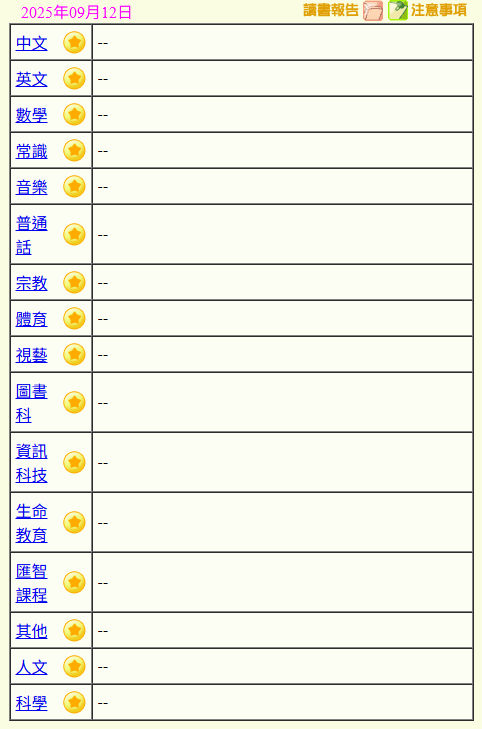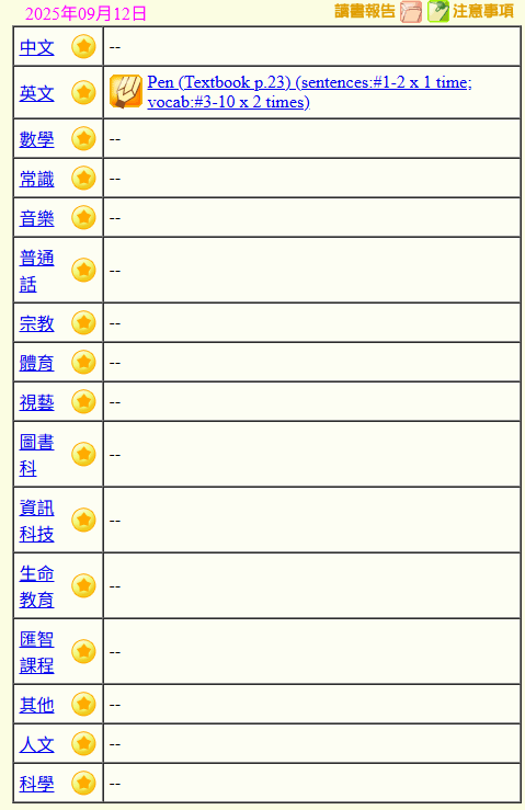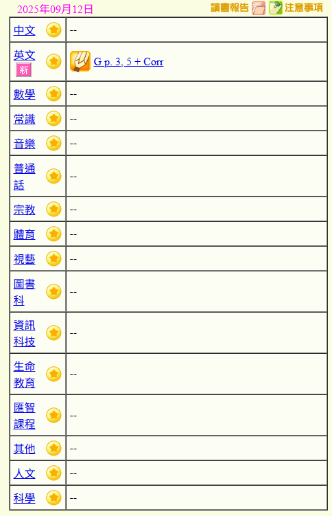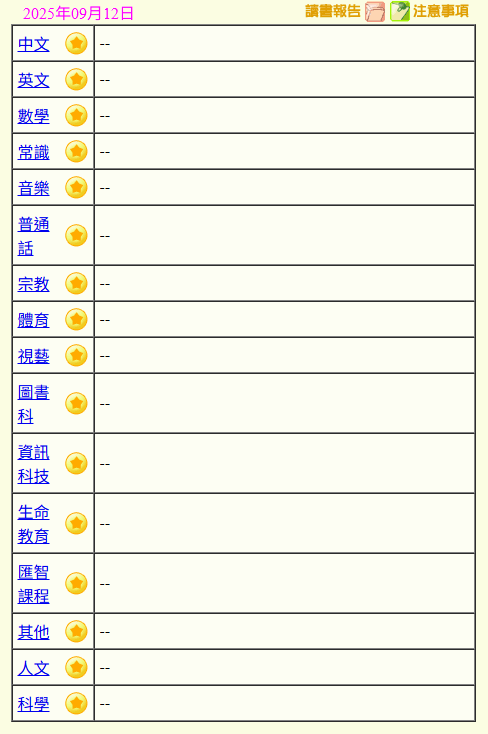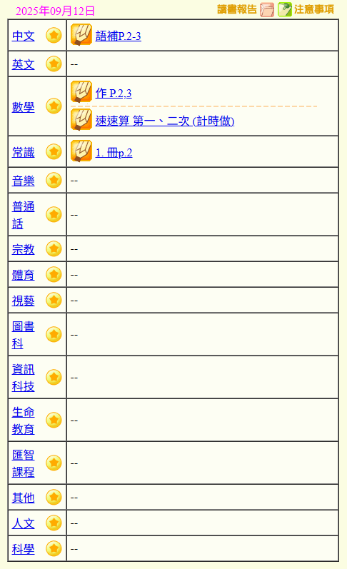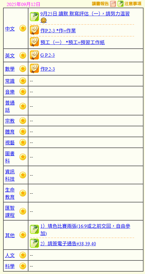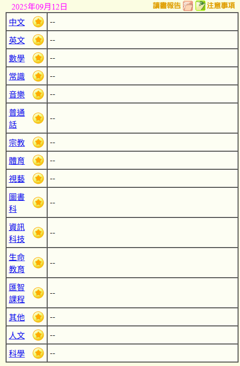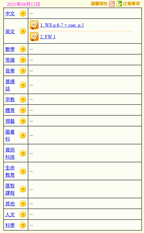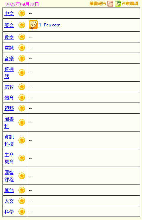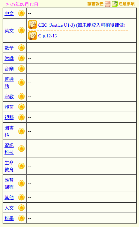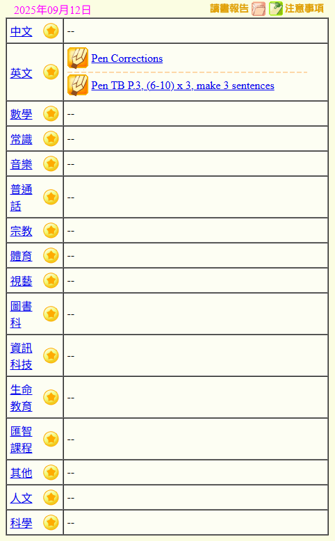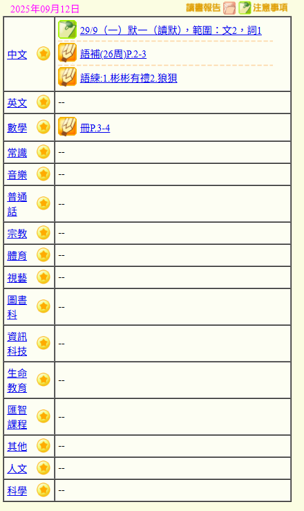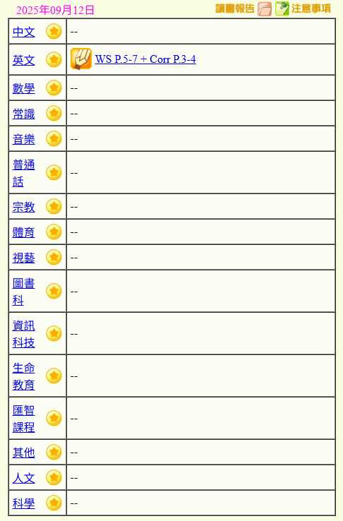 - 班別家課