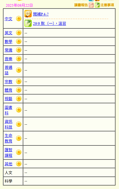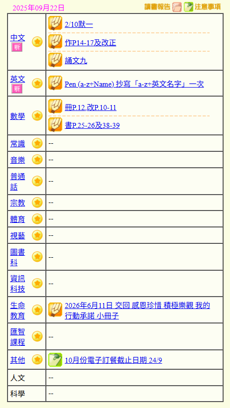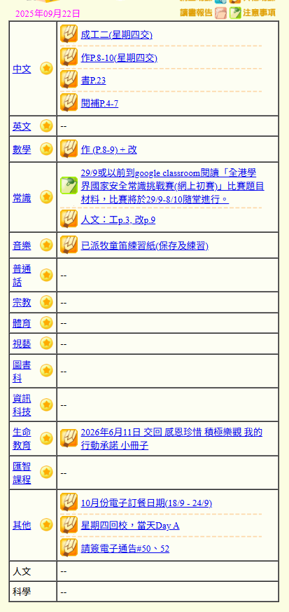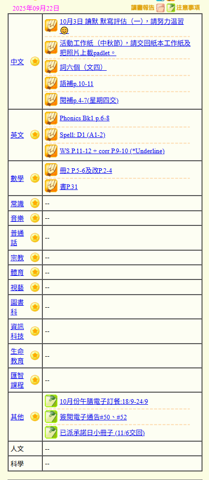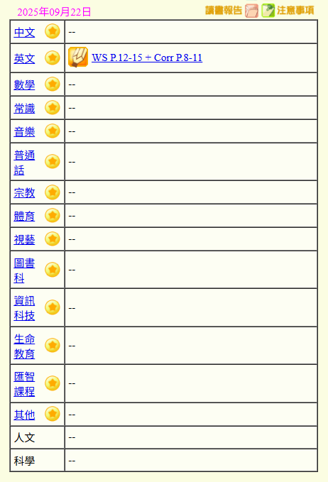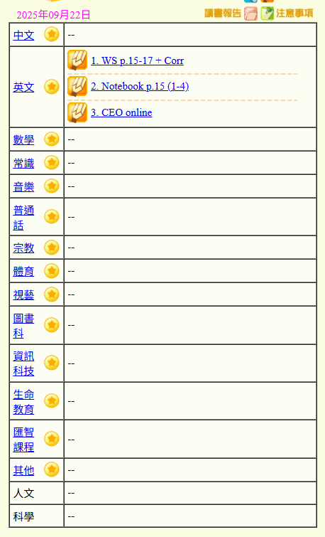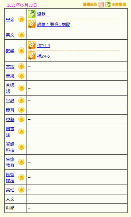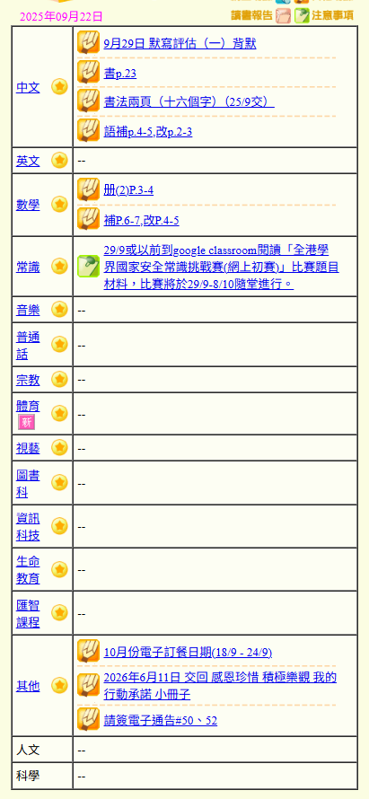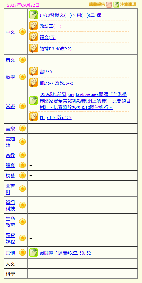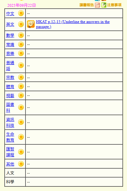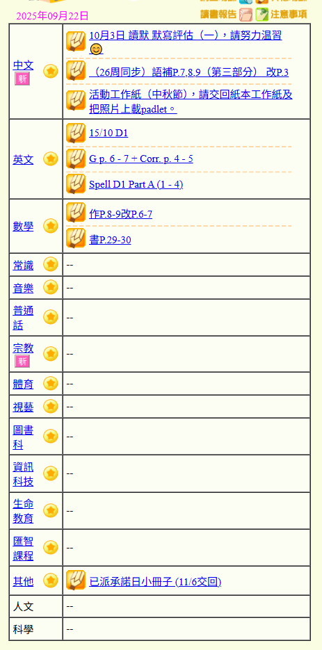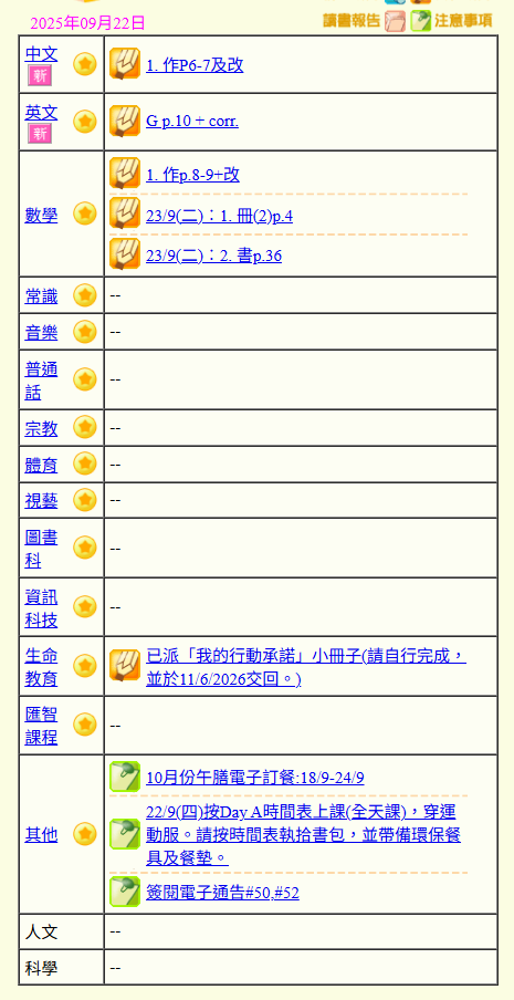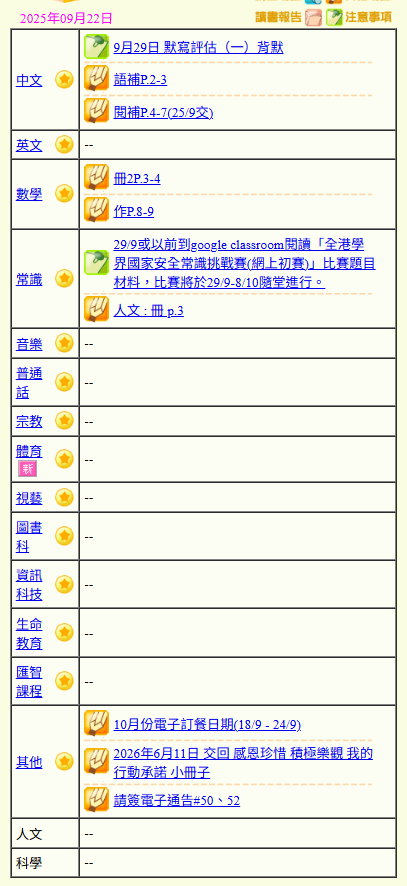 - 班別家課
