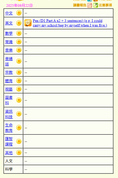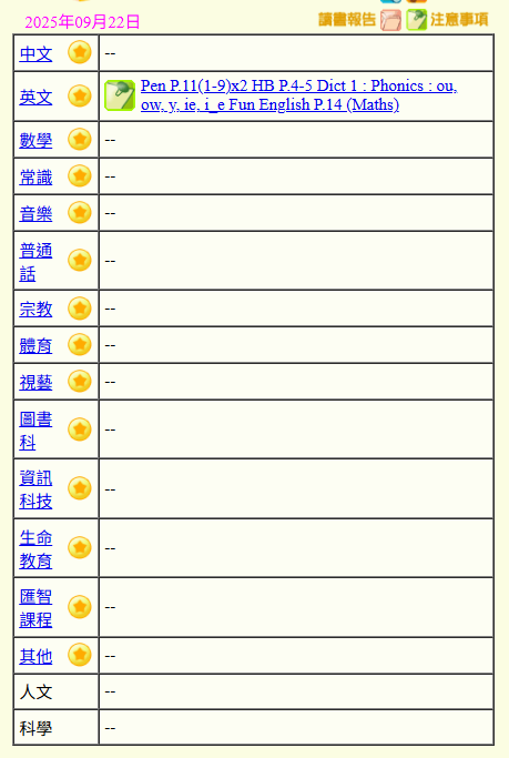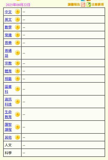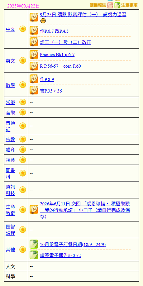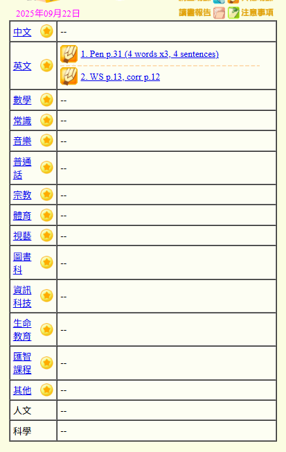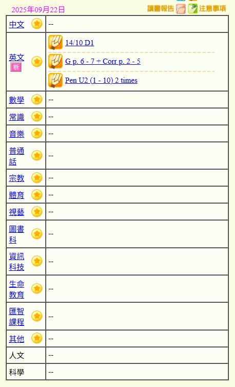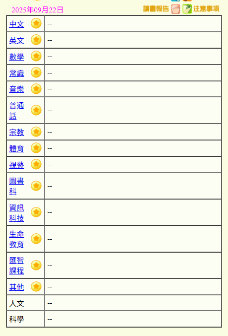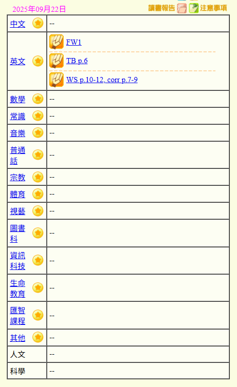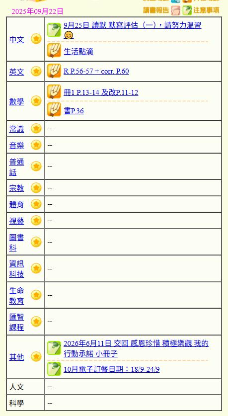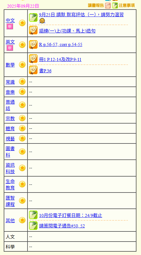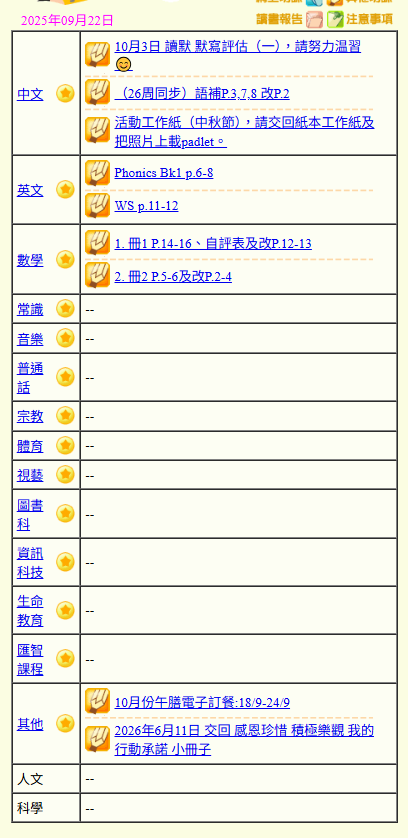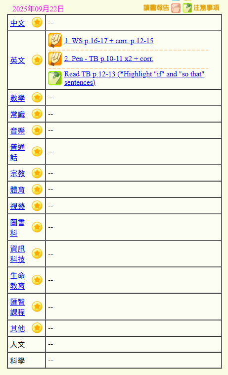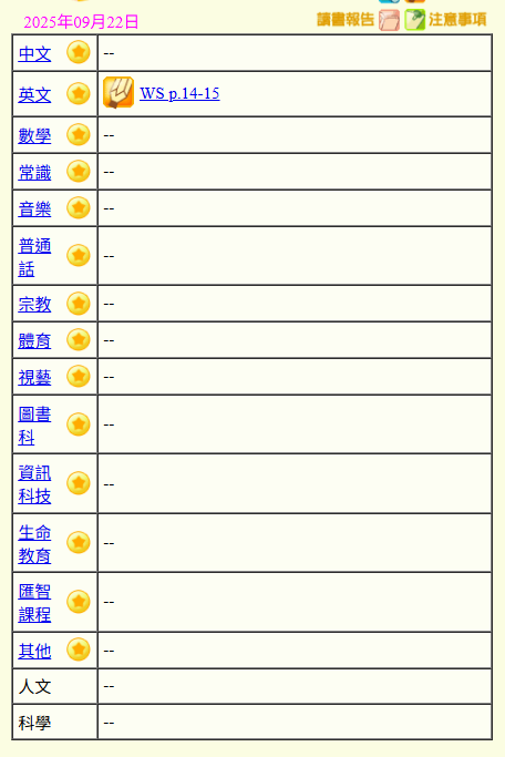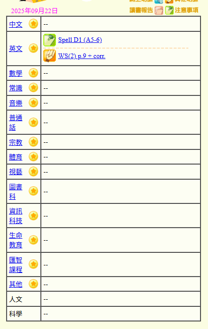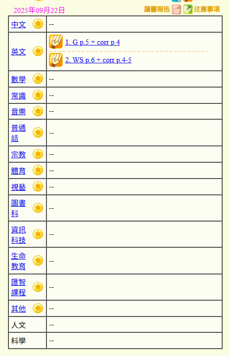 - 班別家課