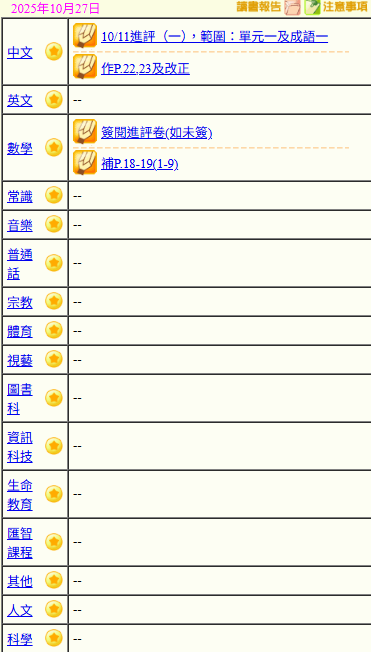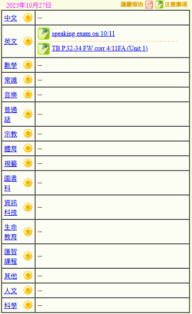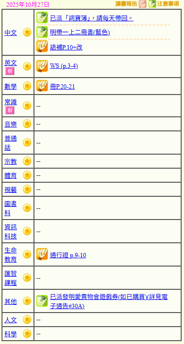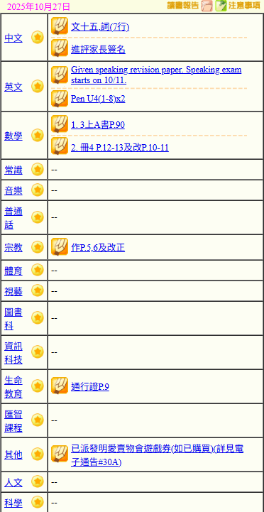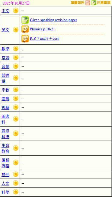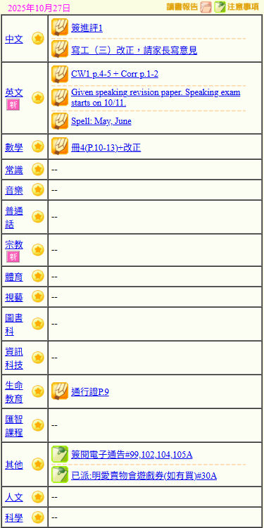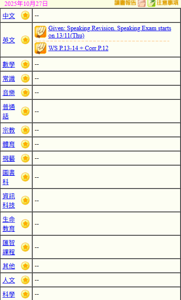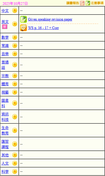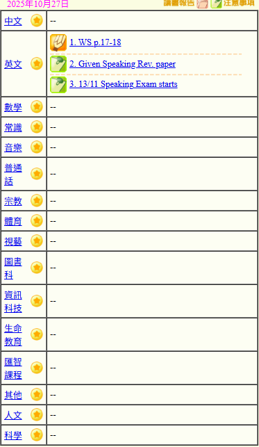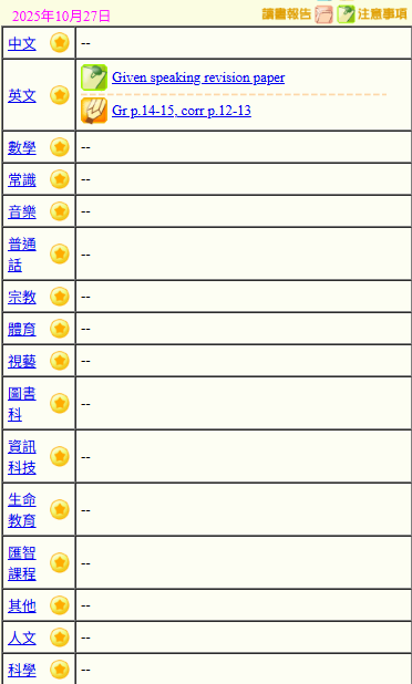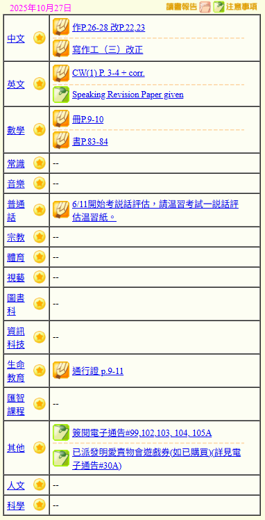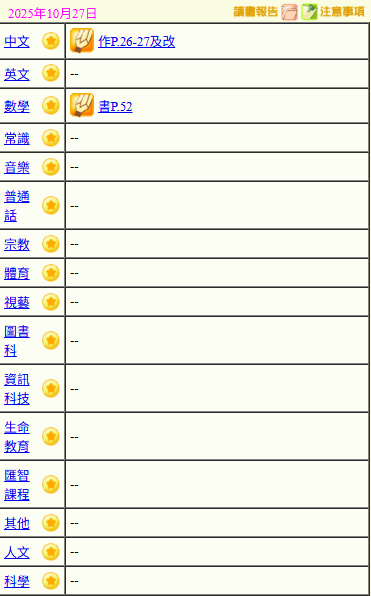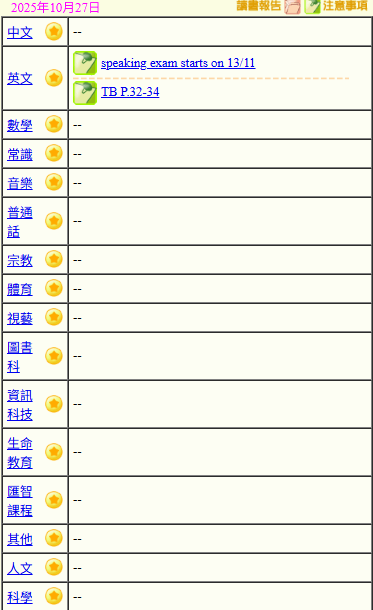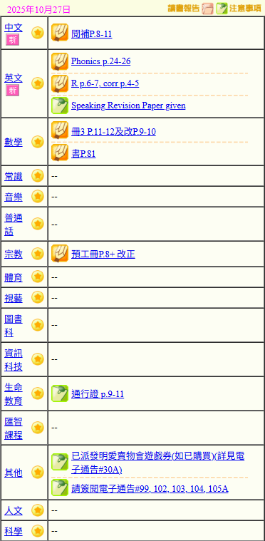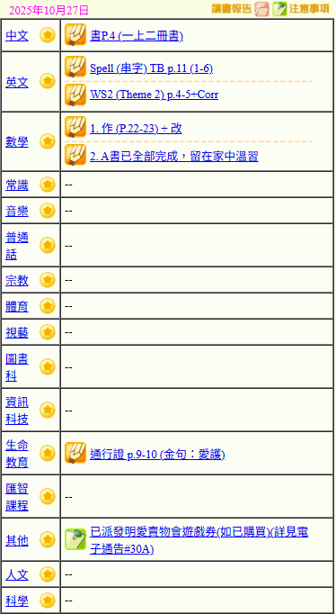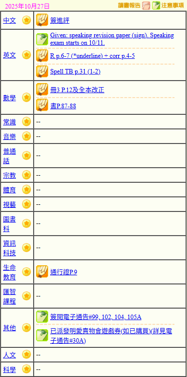 - 班別家課