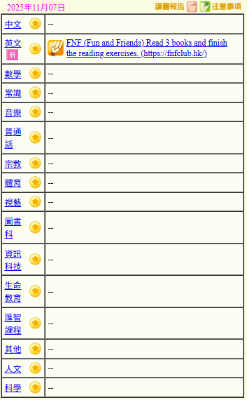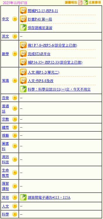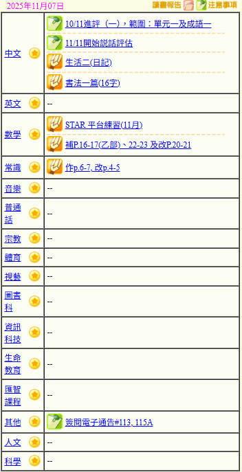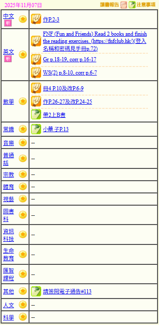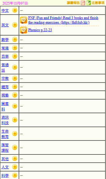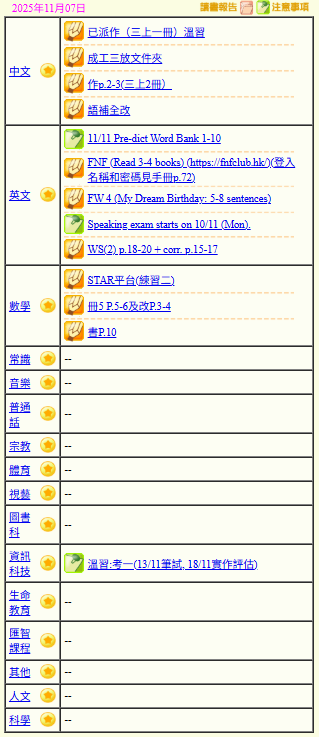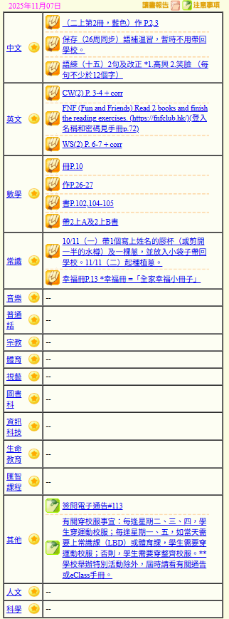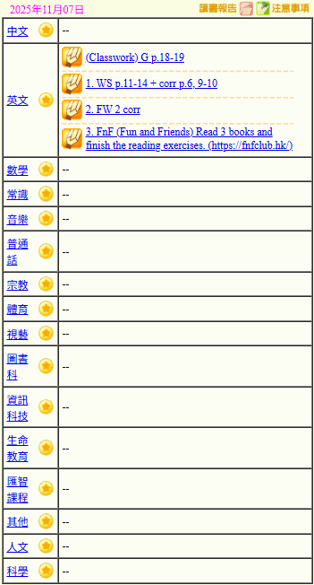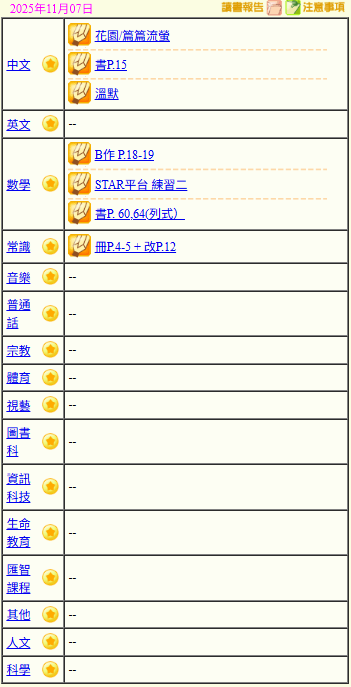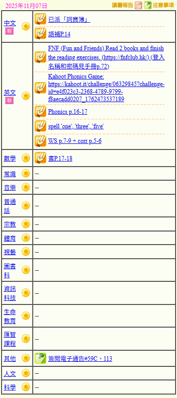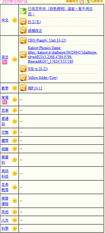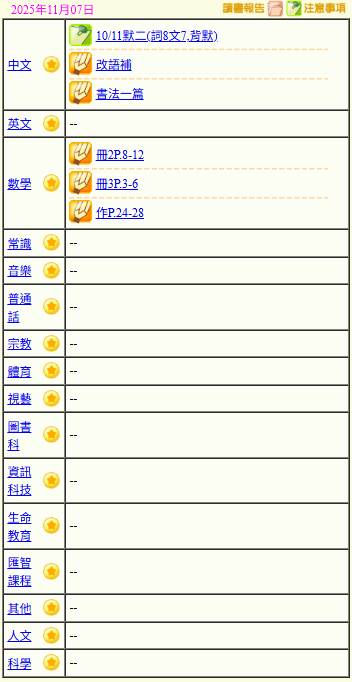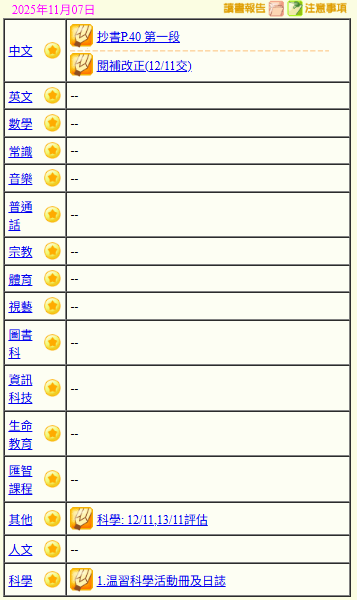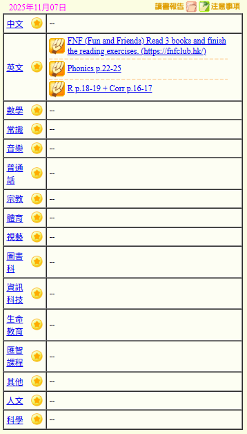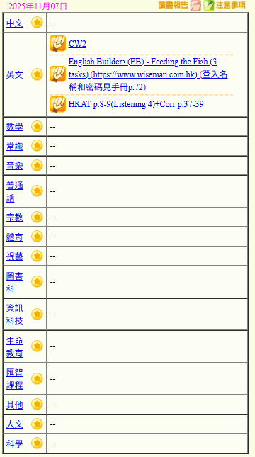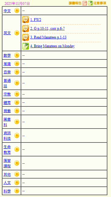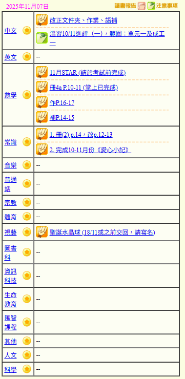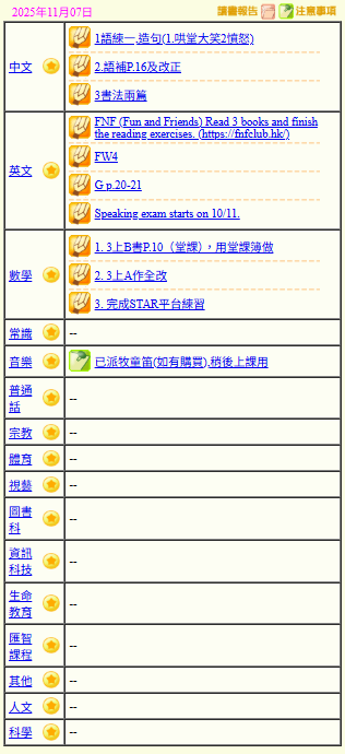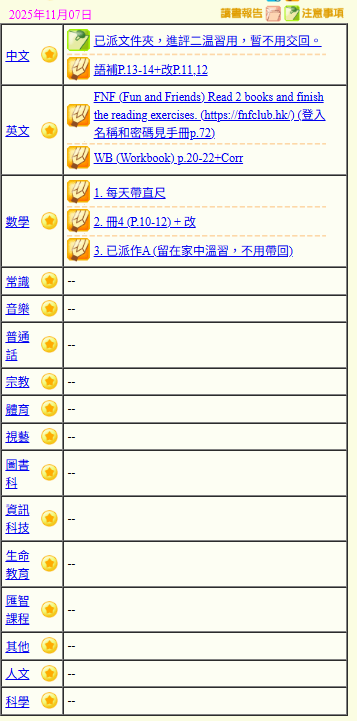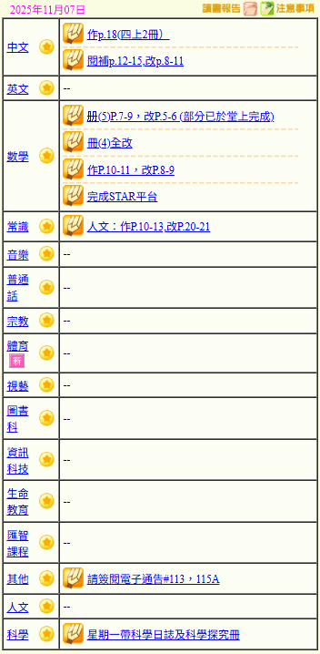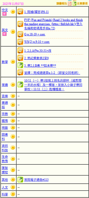 - 班別家課