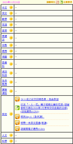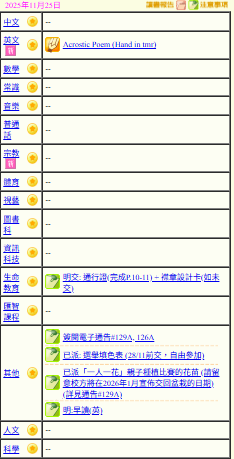 - 班別家課