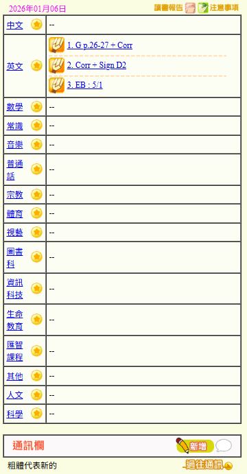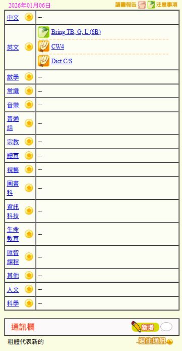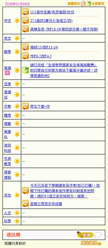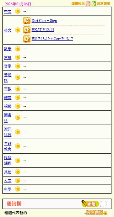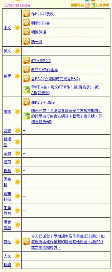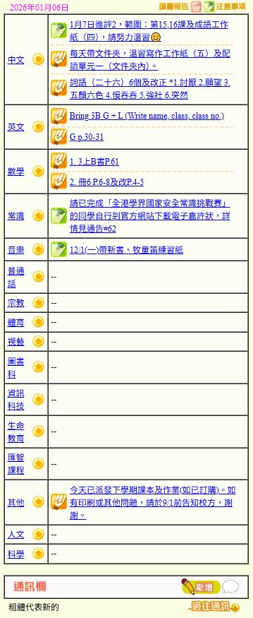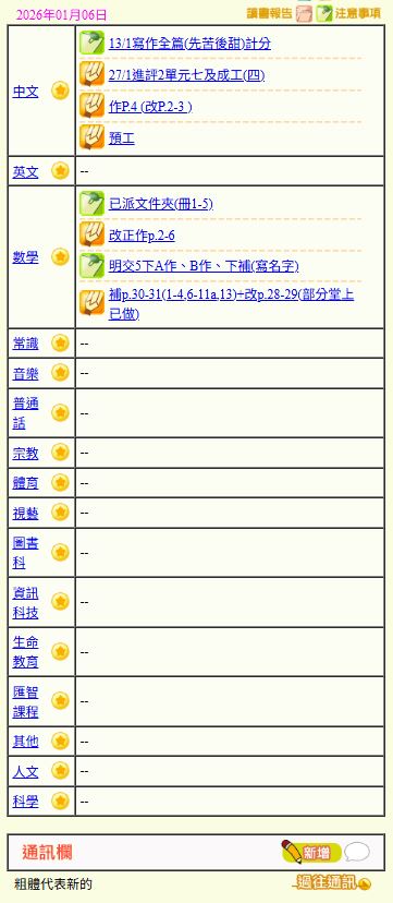 - 班別家課