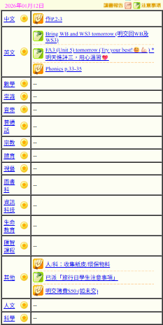 - 班別家課