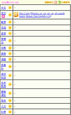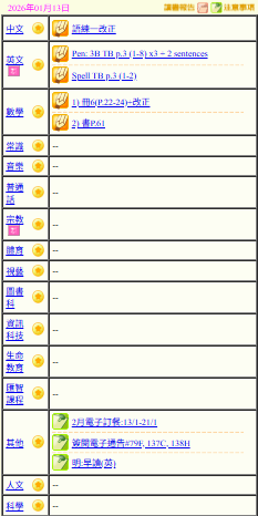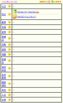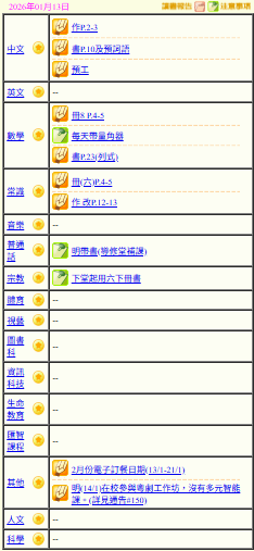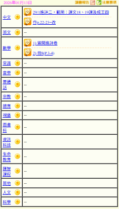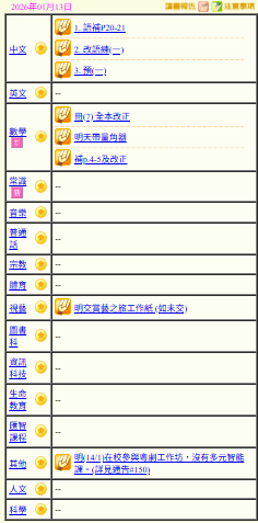 - 班別家課