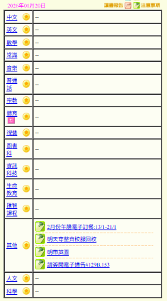 - 班別家課