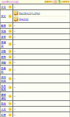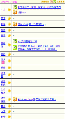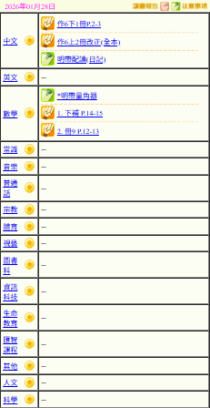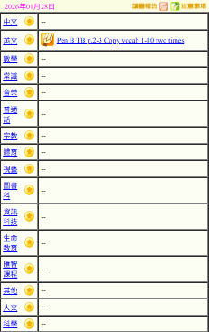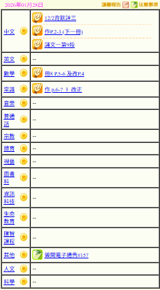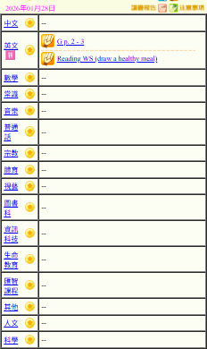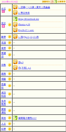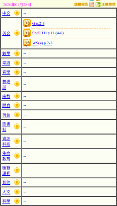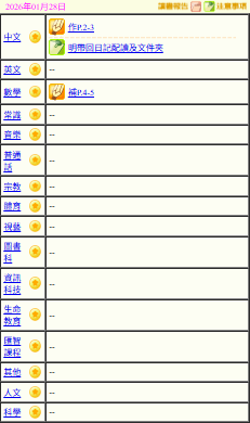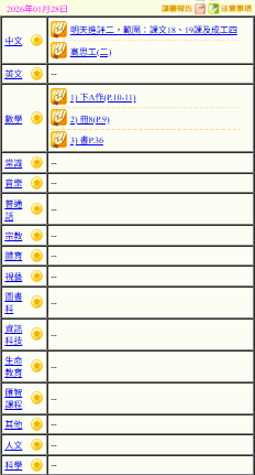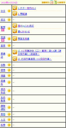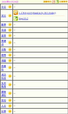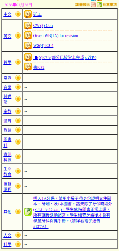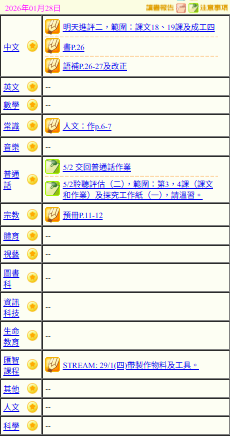- 班別家課