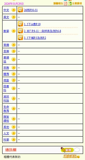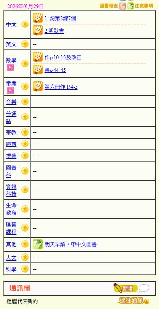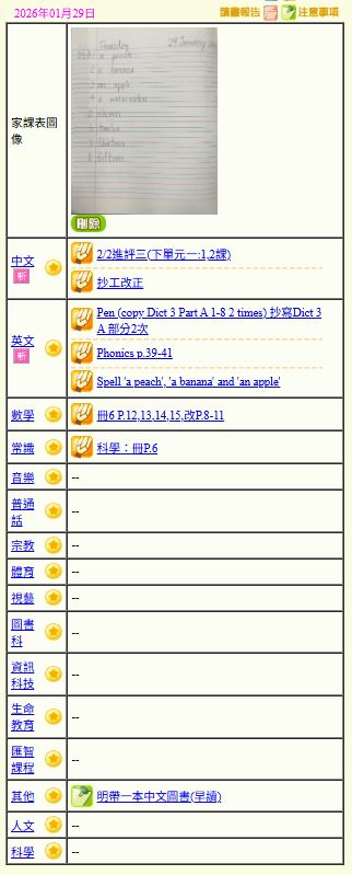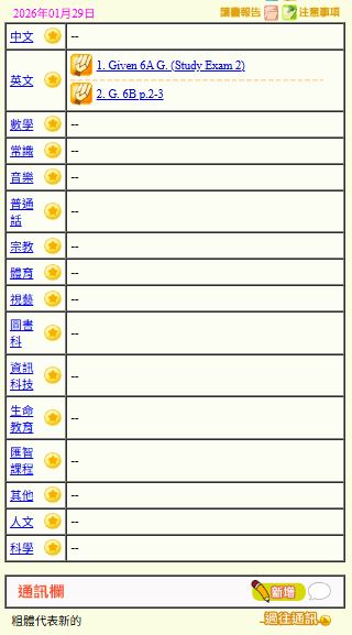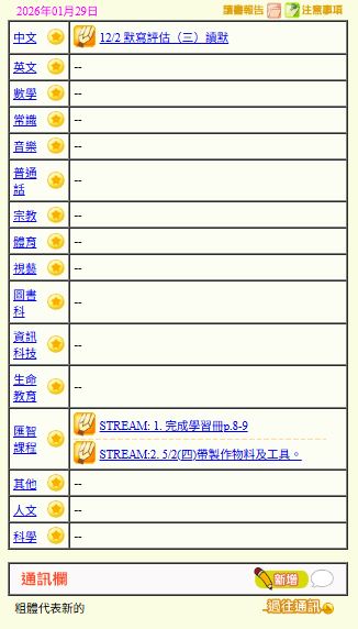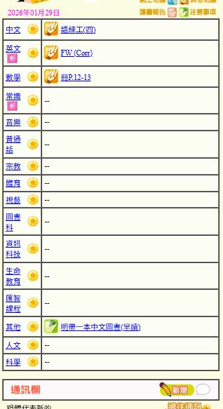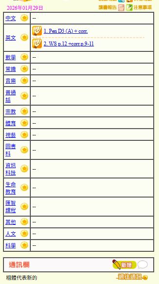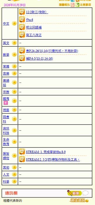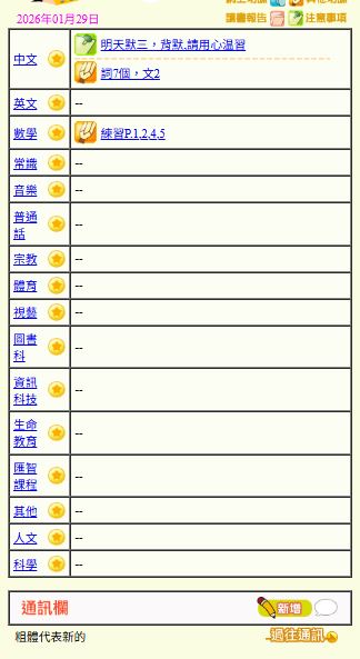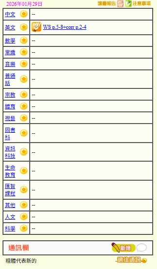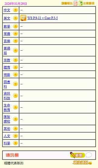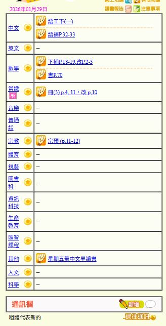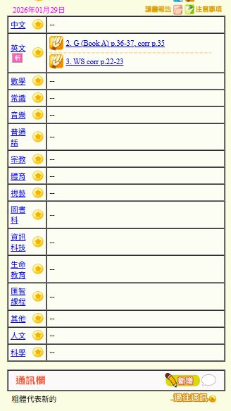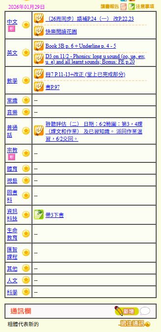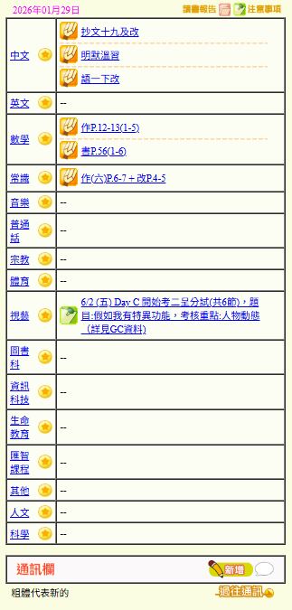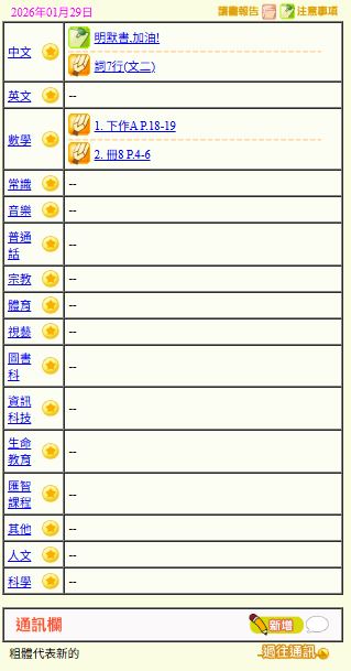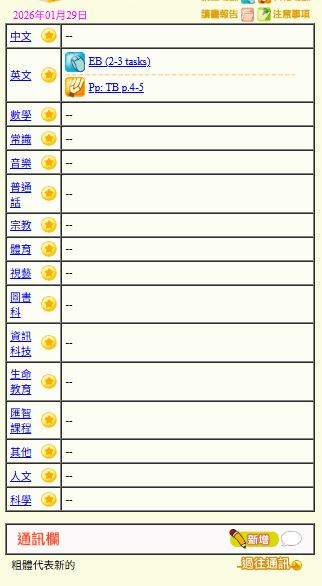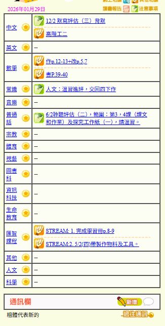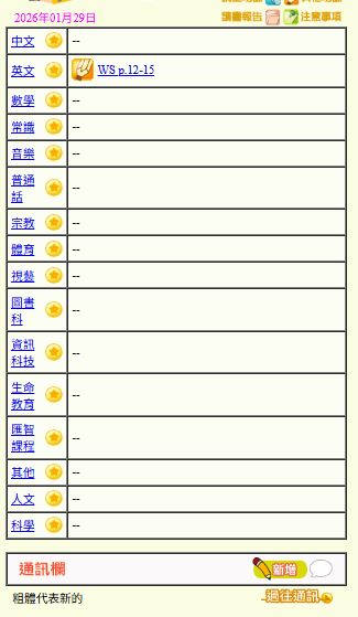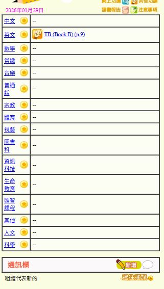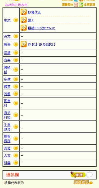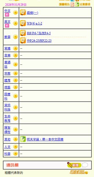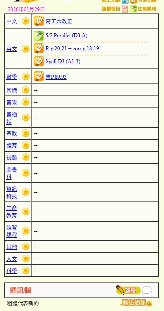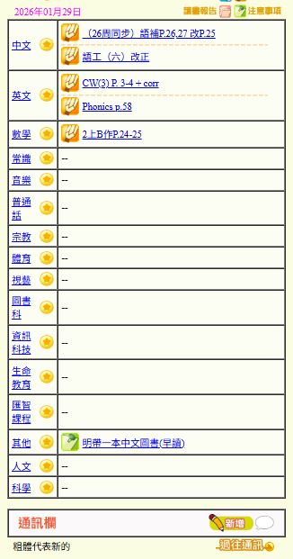 - 班別家課