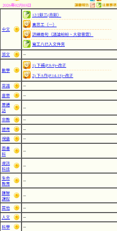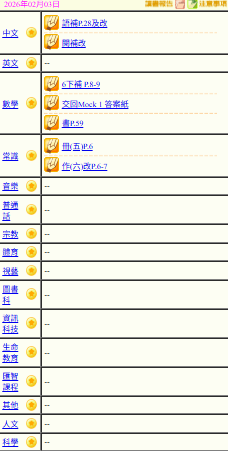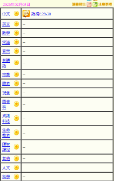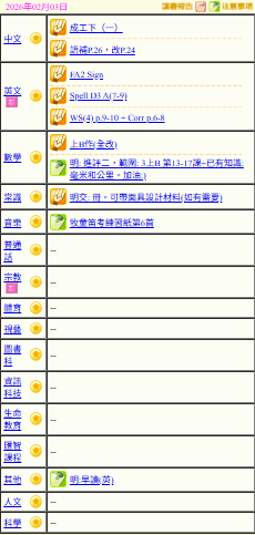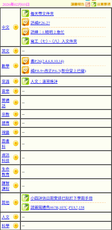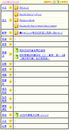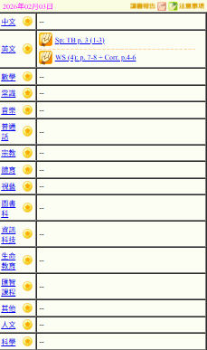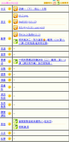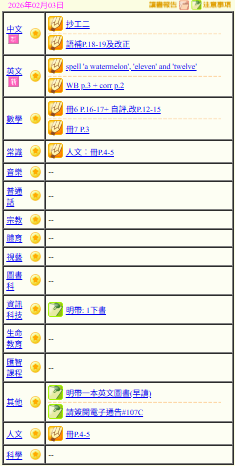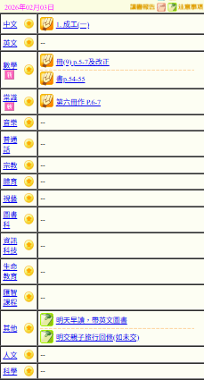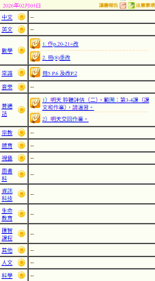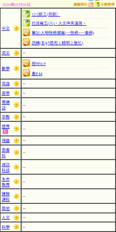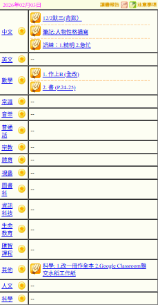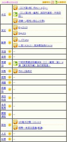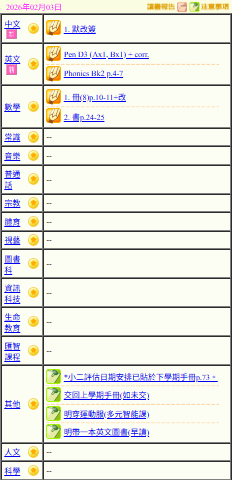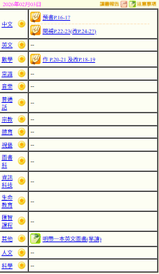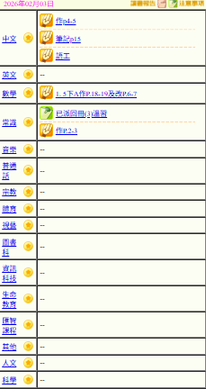 - 班別家課