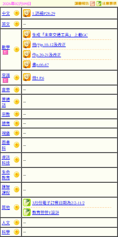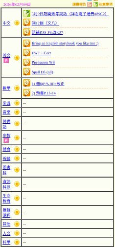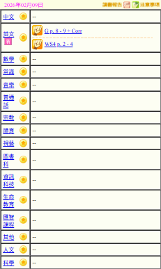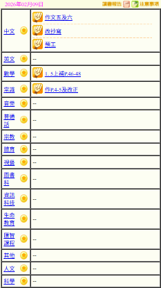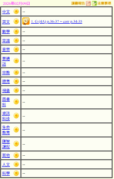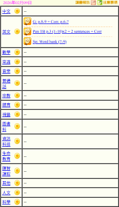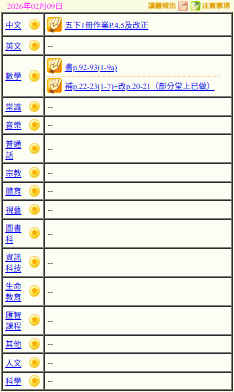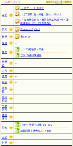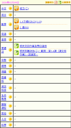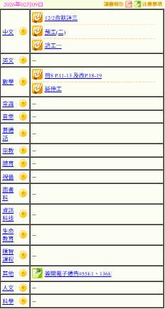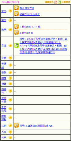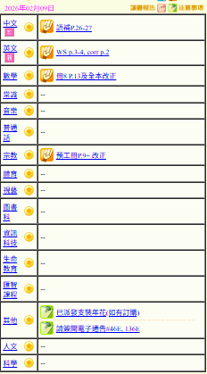 - 班別家課